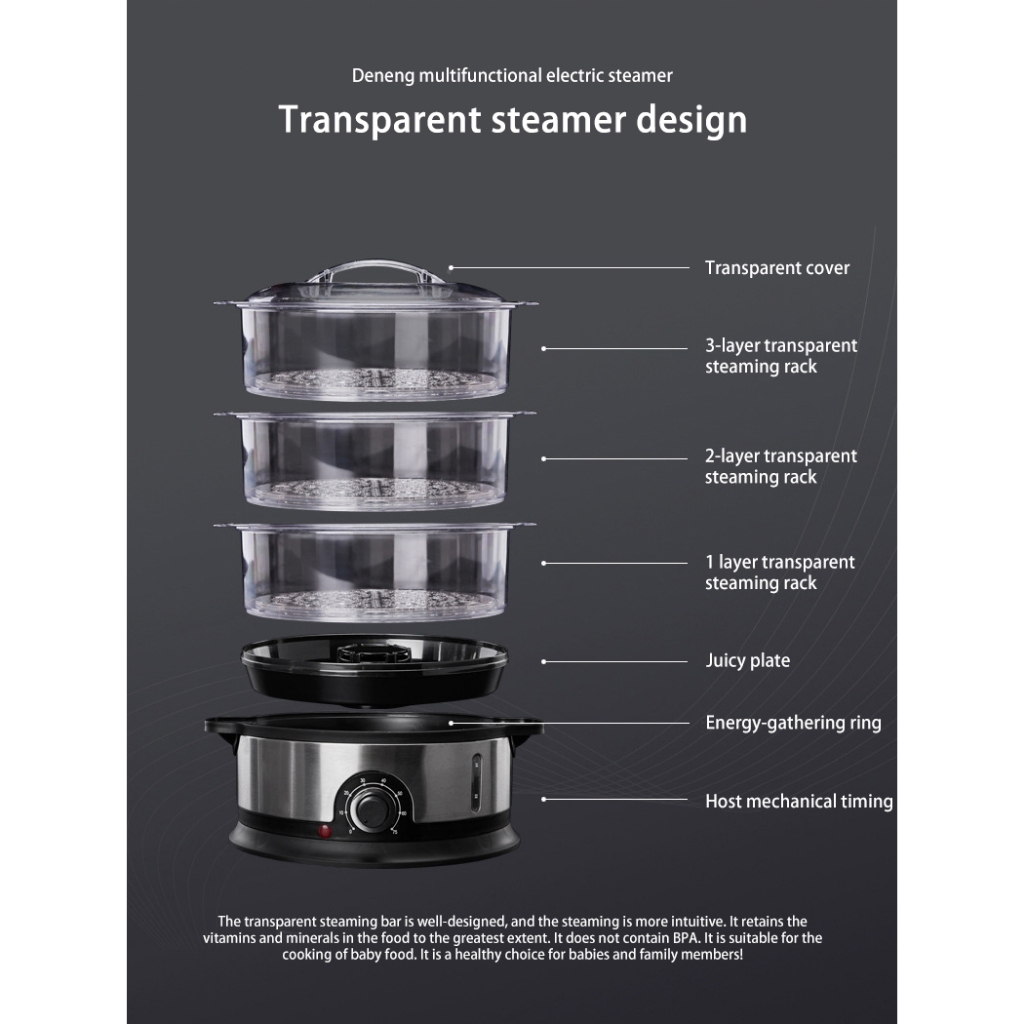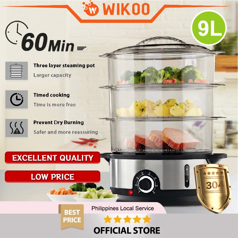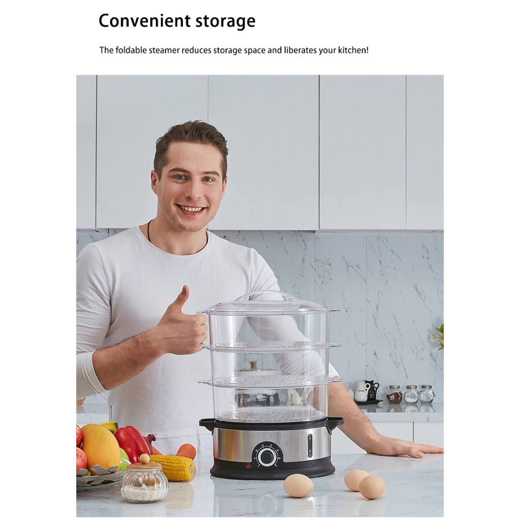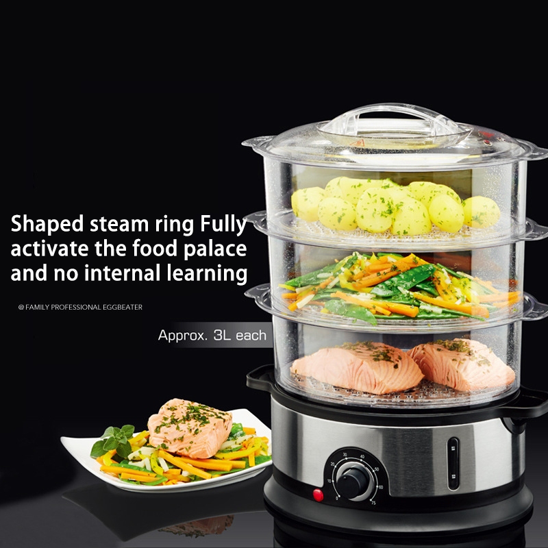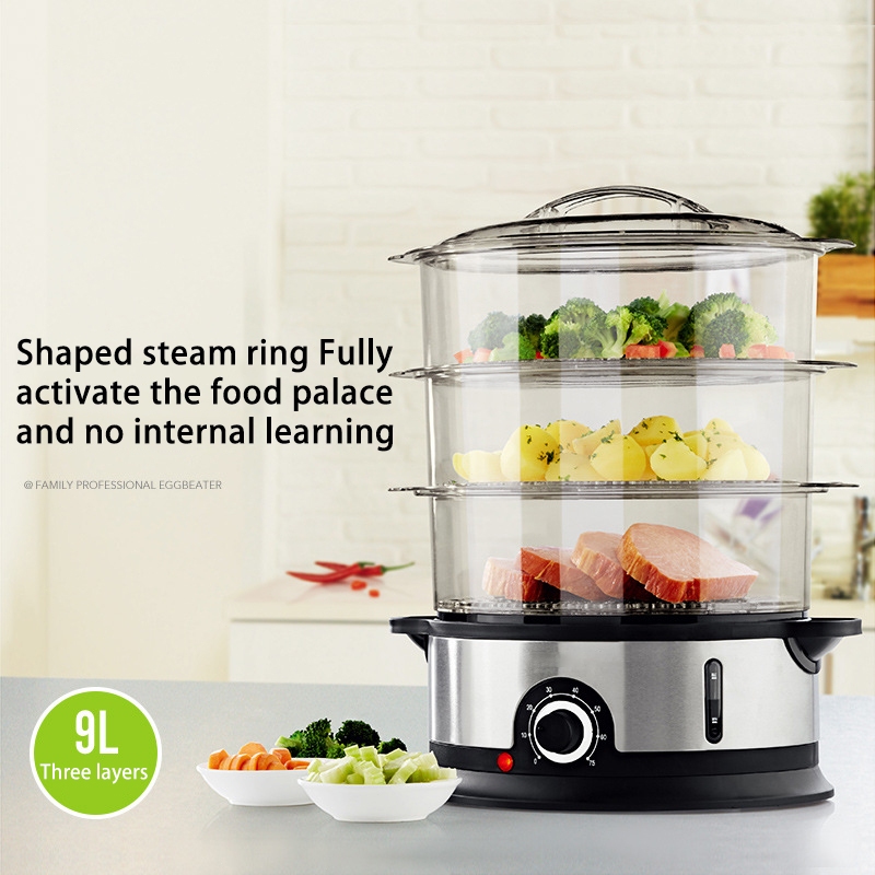 Electric Steamer 9L Home 3-layer Large Capacity Siu-mai Steamer Stainless Steel Food Steamer