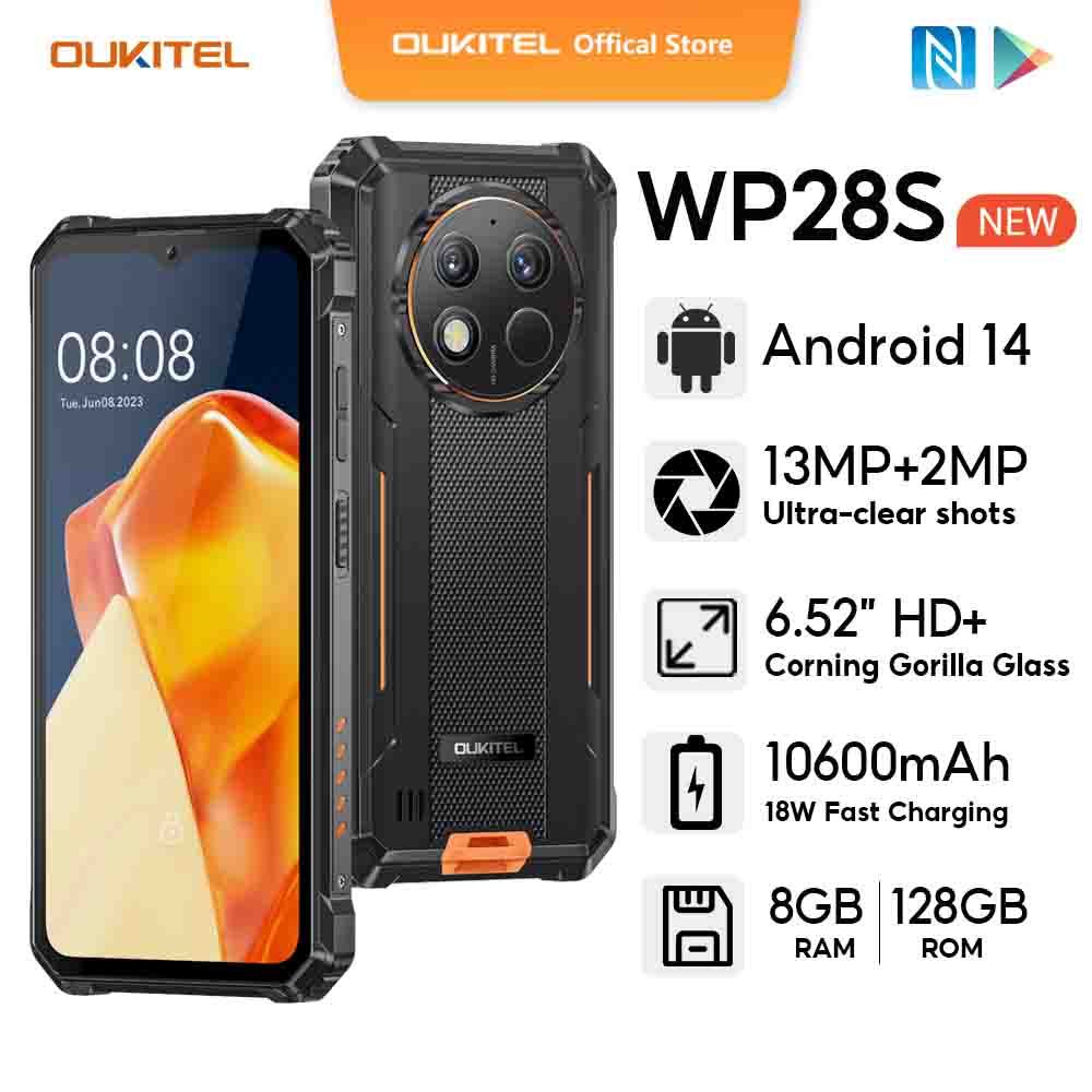 OUKITEL WP28S Android 14 8GB+128GB 6.52inch HD+ Mobiles 10600mAh 18W fast charging 13MP+2MP Camera Fingerprint FM NFC Cellphone