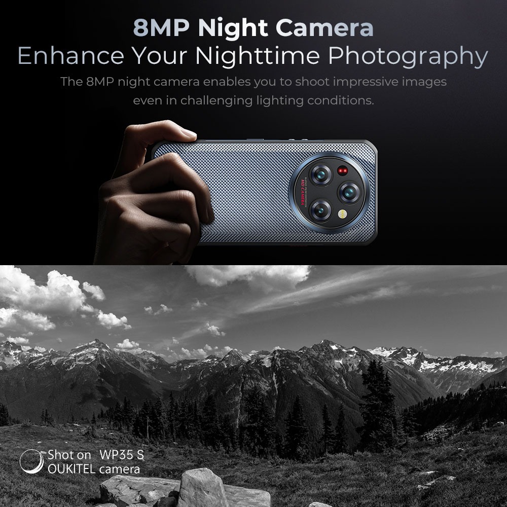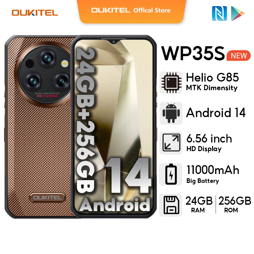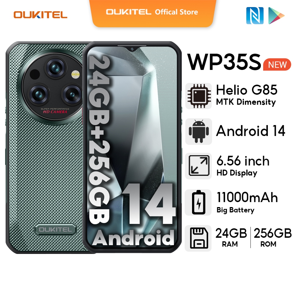 OUKITEL WP35S Android 14 24GB+256GB Mobiless 6.6” FHD+ 2.4K 60HZ Screen 48MP+8MP Night Vision NFC Face ID Cellphone