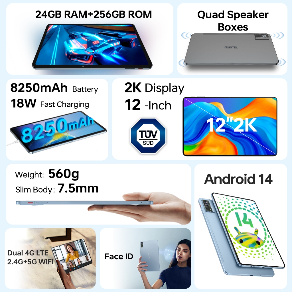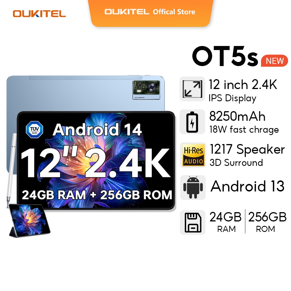 OUKITEL OT5S 24GB+256GB 12 Inch FHD+ Display Tablet 8250mAh Android 13 16MP Camera MTK Tablet