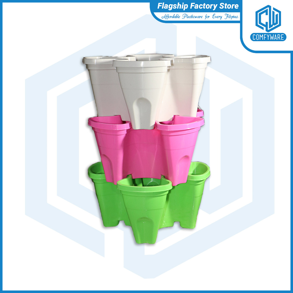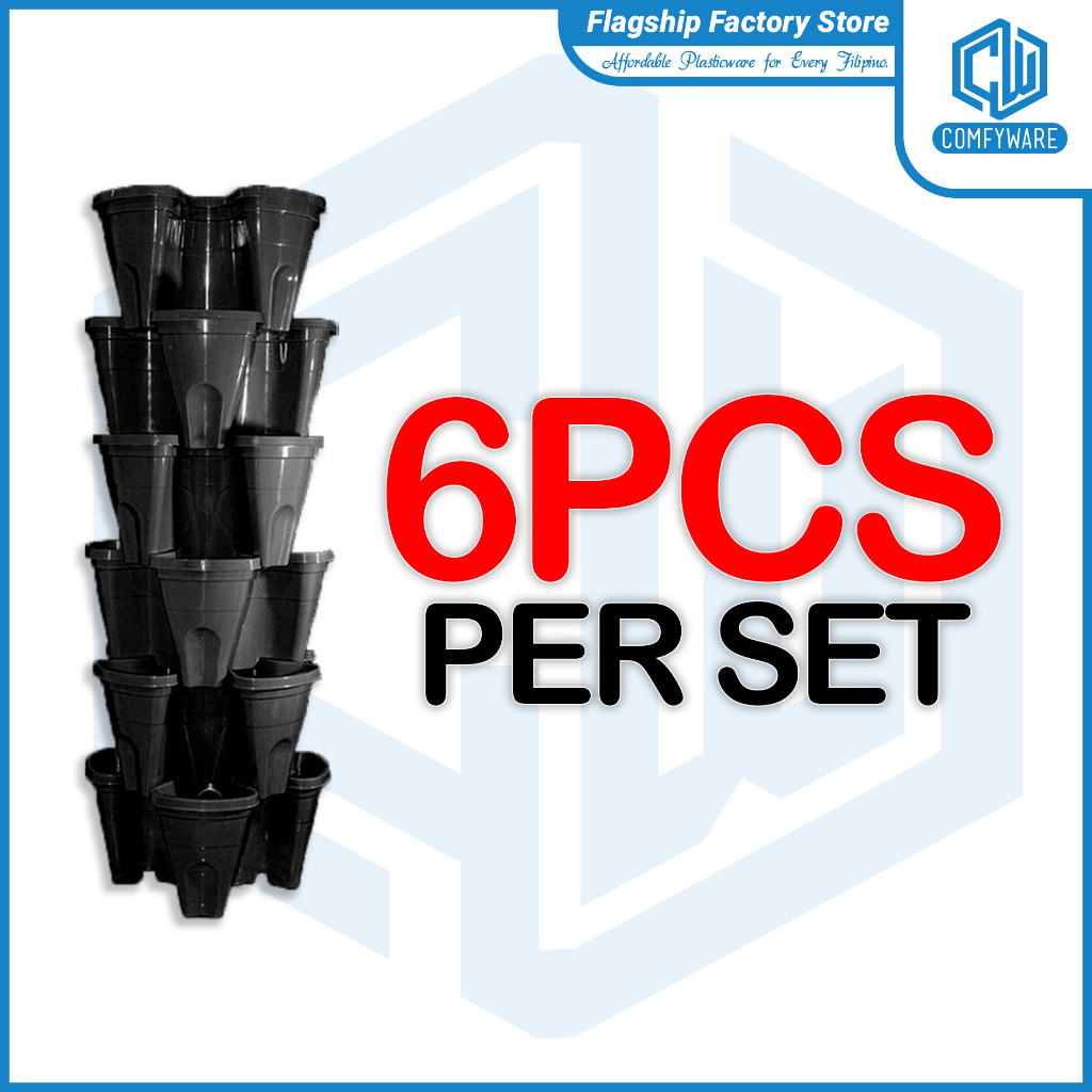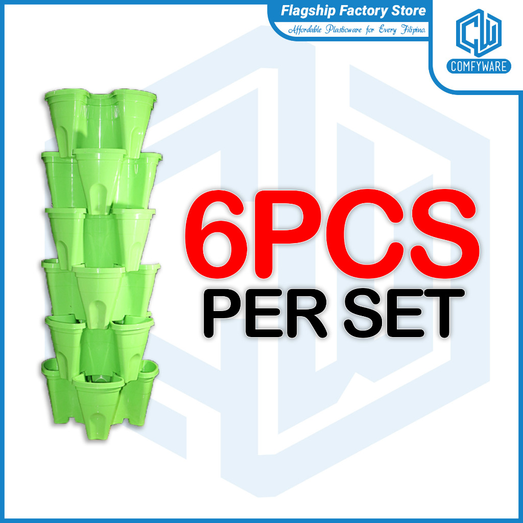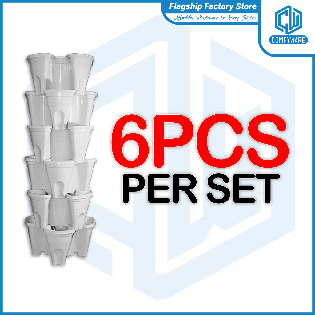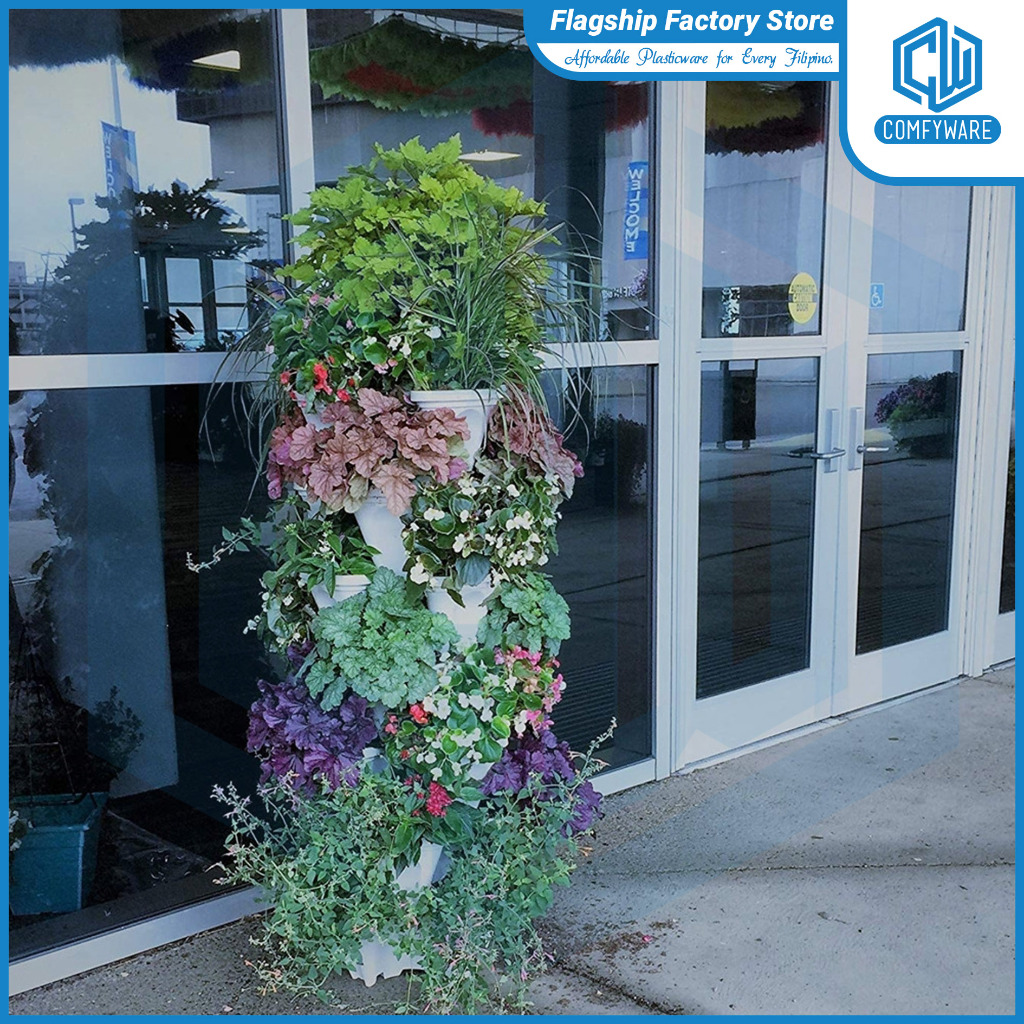 (6PCS/SET) 13 Inches Butterfly Stackable Tower Vertical Flower Pot For Home Gardening (COD)