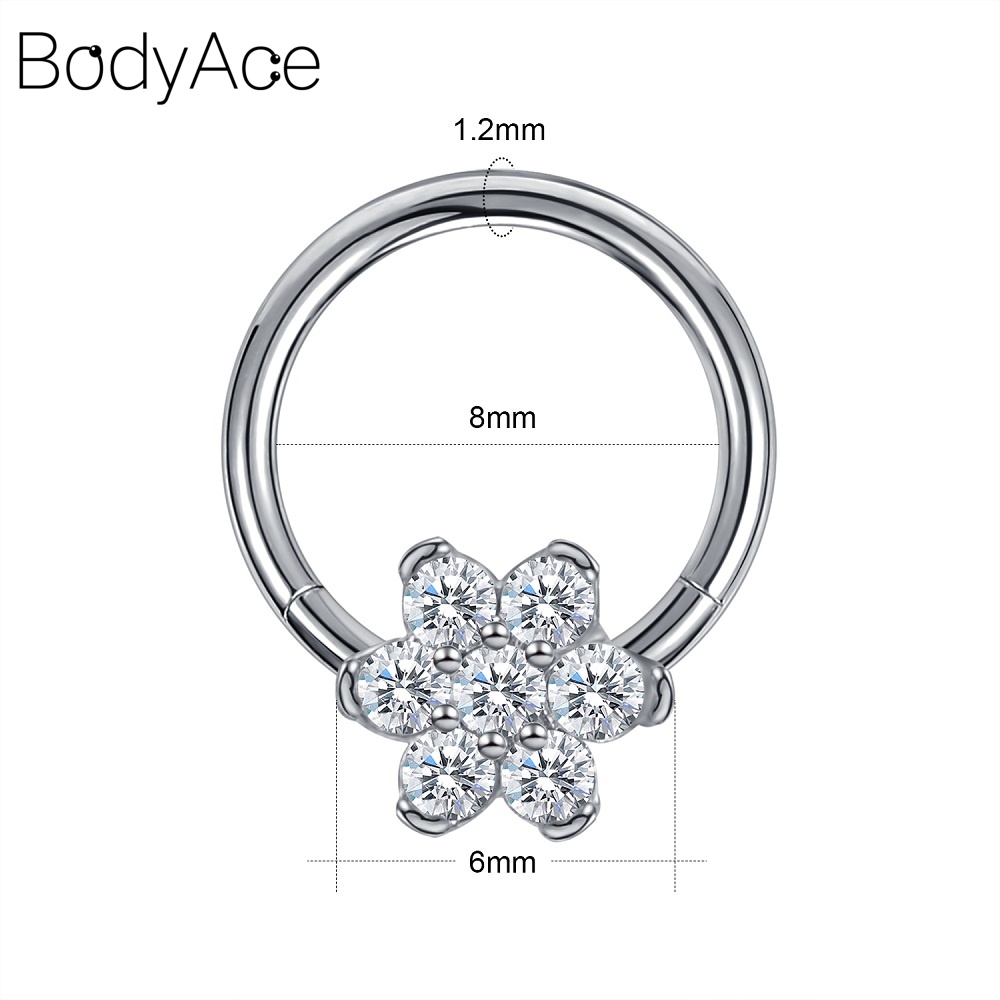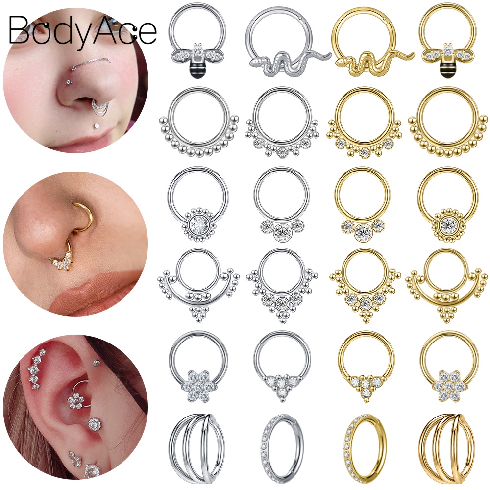 Bodyace 1 Pc Stainless Steel Clicker Septum Piercings Bee Snake Flower Nose Ring Helix Cartilage Tragus Piercings