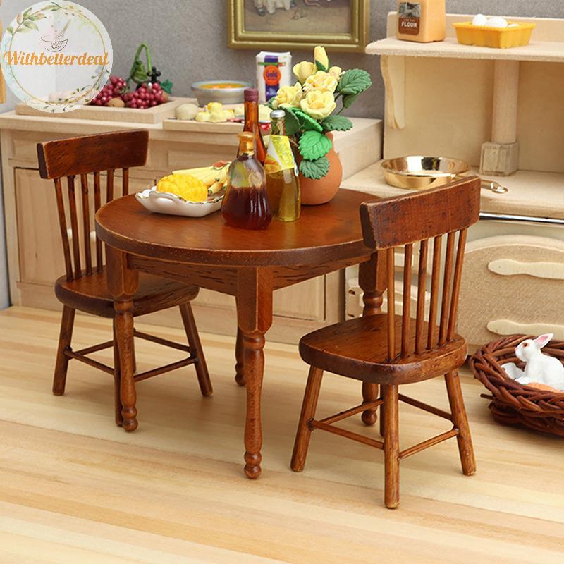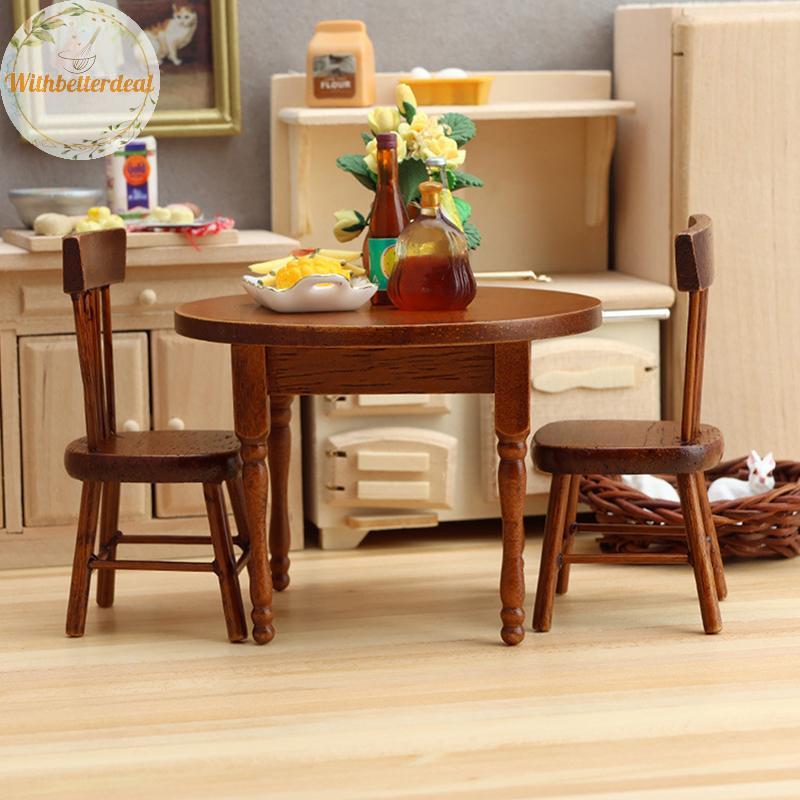 Withbetter 1Set 1:12 Dollhouse Miniature Tables Chairs Dining Table Kitchen Model Decor Doll House Accessories HG
