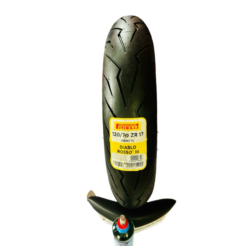 PIRELLI DIABLO ROSSO 3 120/70/17 ZR GERMANY MADE STEEL BELT WITH SEALANT AND TIRE VALVE