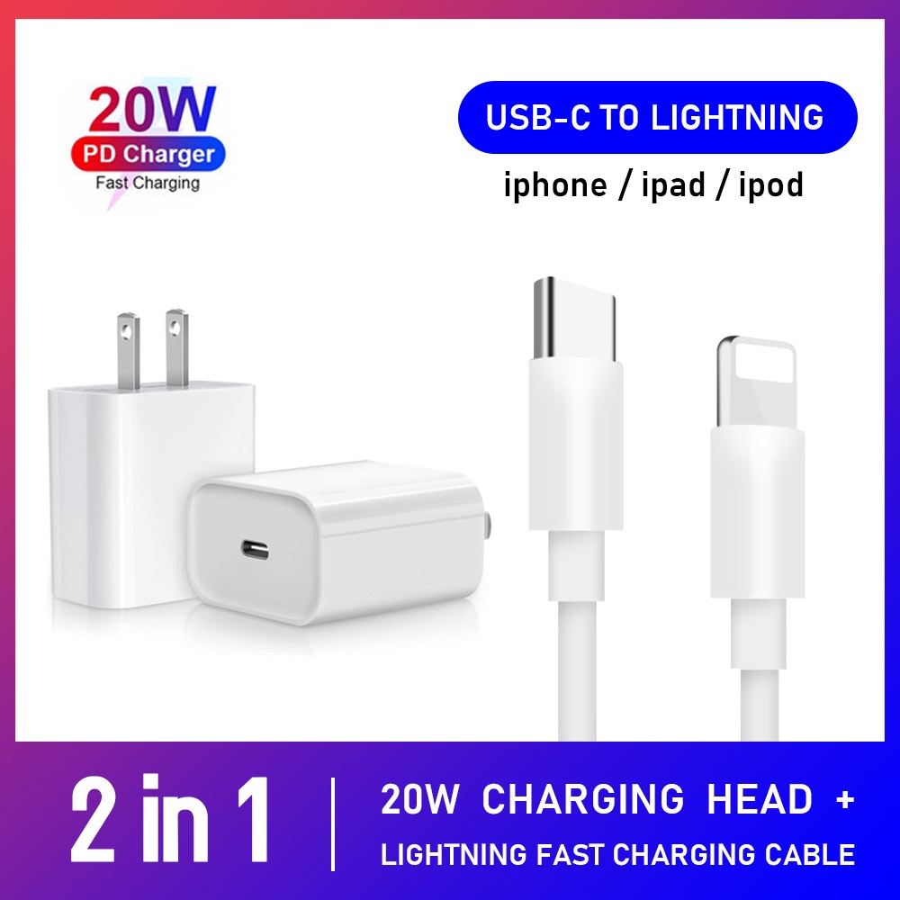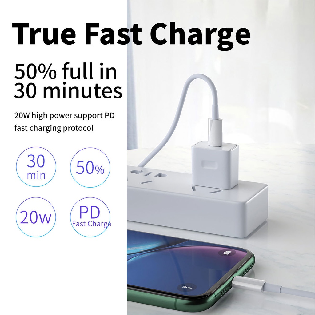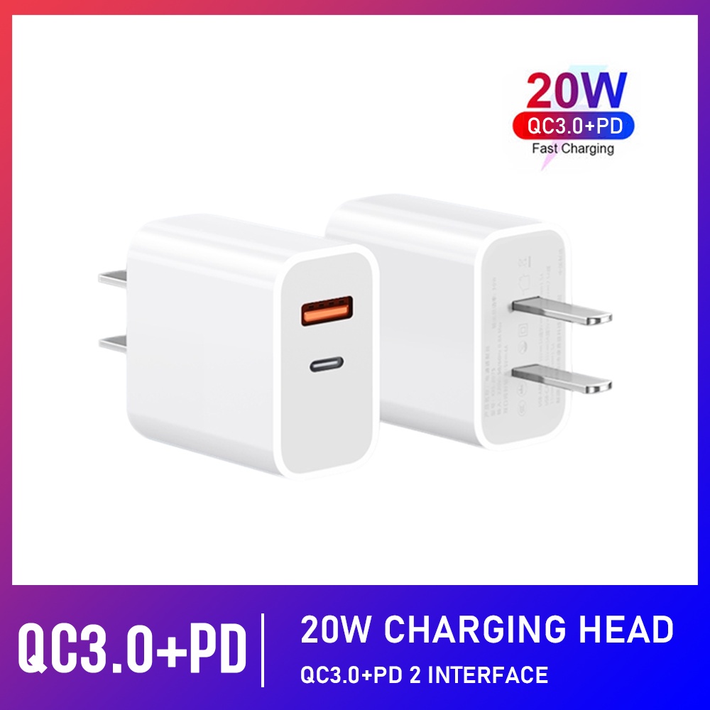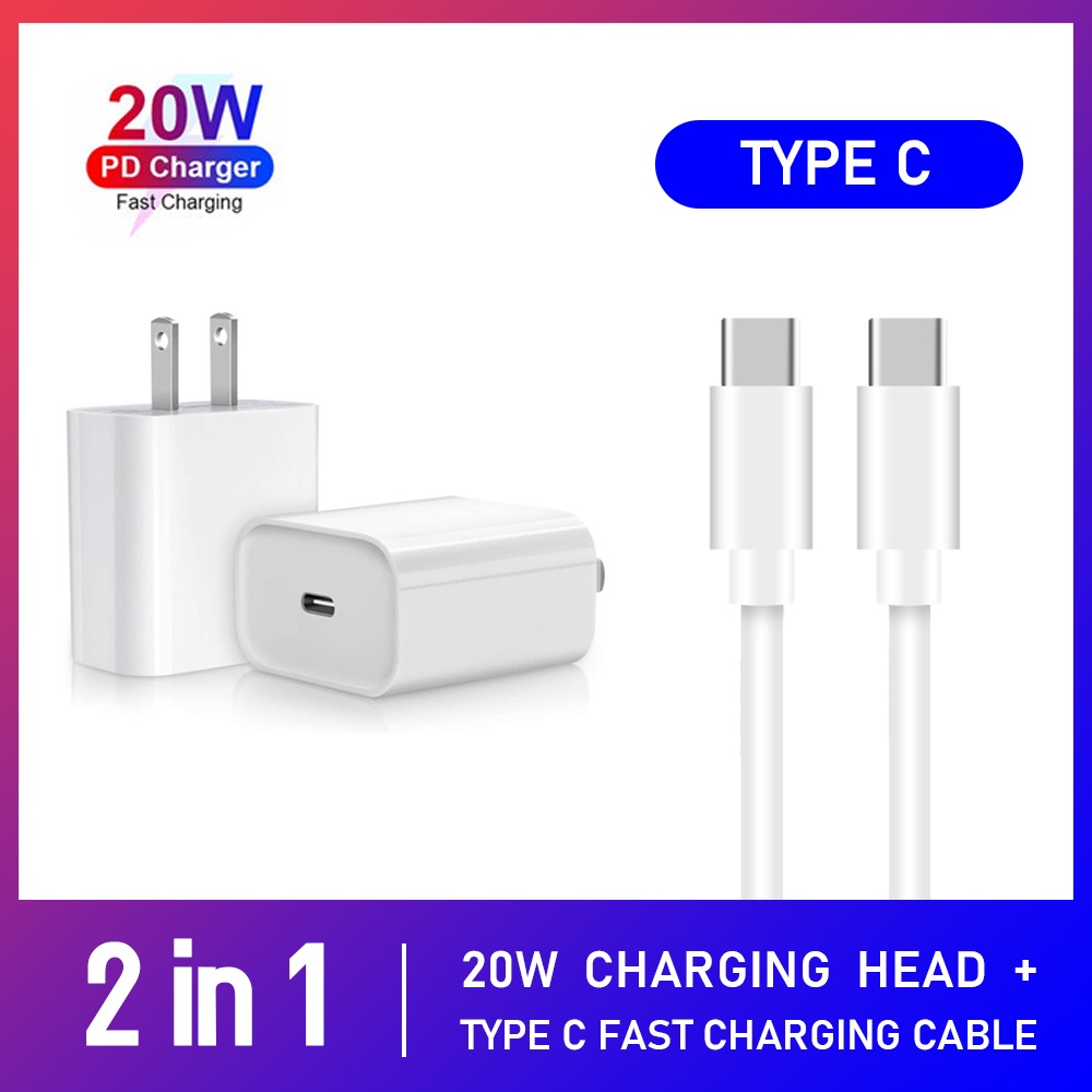 20W USB-C Power Adapter With USB PD Cable Cord US Plug Charger Smart Fast Charger Adapte for All android