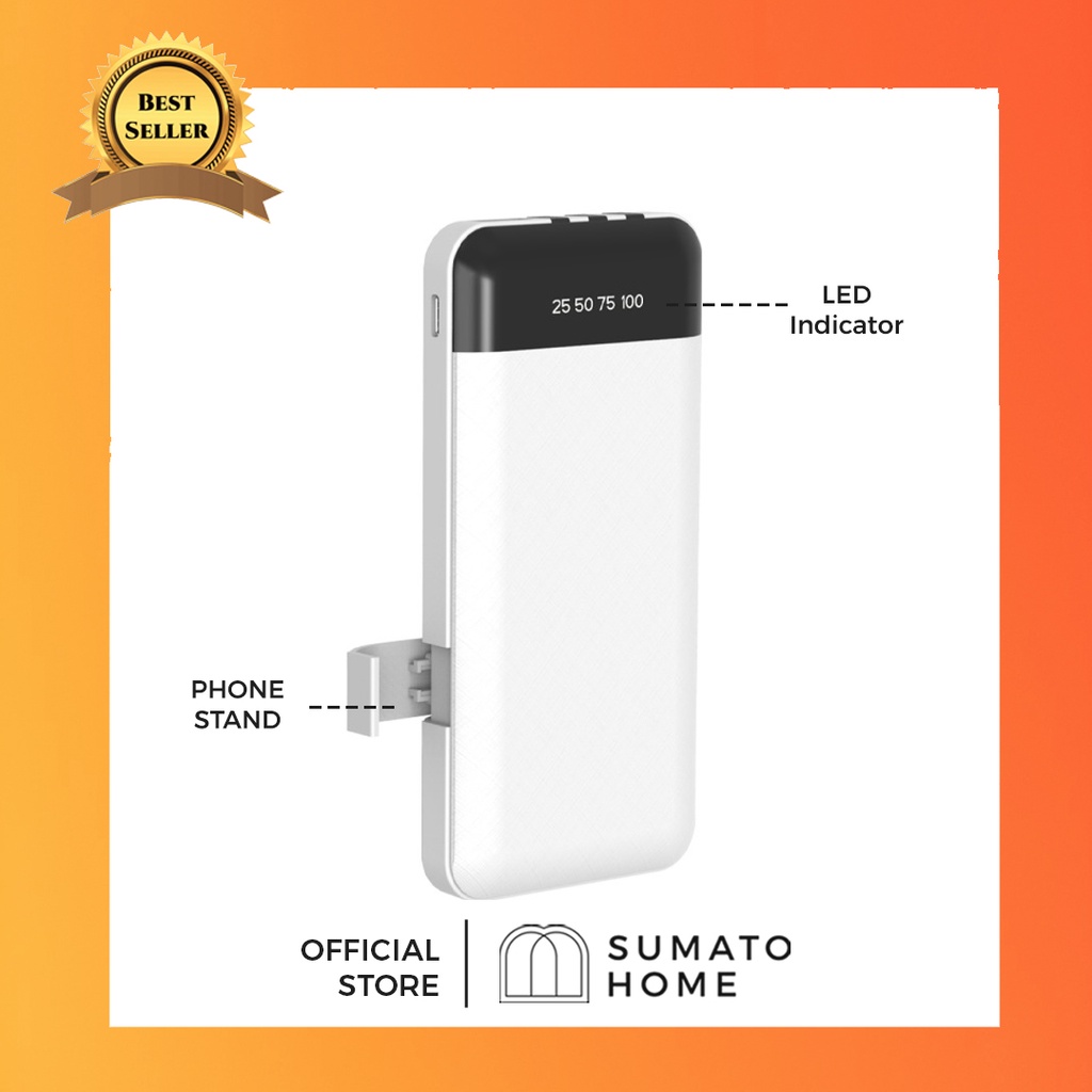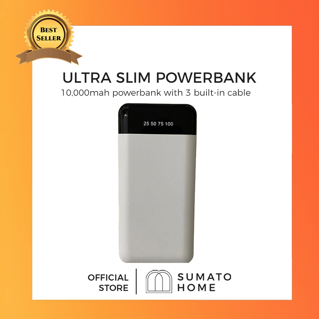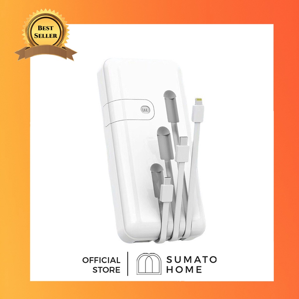 Sumato Home White Ultra Slim 10000mAh Powerbank with 3 Built in Cable Type C Micro USB IOS