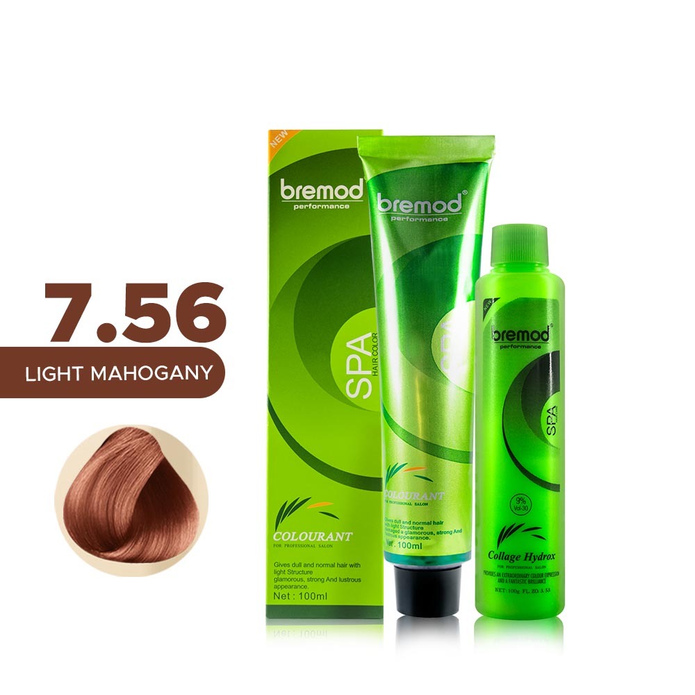 Bremod Hair Color 7.56 Light Mahogany 100mL with Bremod Oxidizer (6%, 9%, OR 12%) 100g Hair Dye