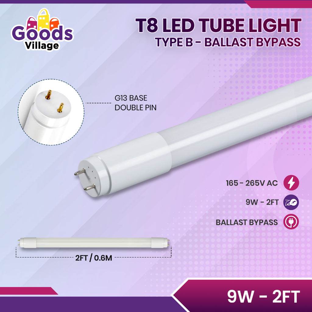 T8 LED Tube Light - 9W 18W 22W - Frosted Lens / TypeB T8 / Batten Housing Fixture / 2ft & 4ft