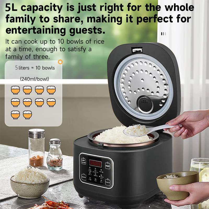OOKAS Large Capacity Rice Cooker 5L Multifunctional Electric Cooker Standard With Steamer Non Stick