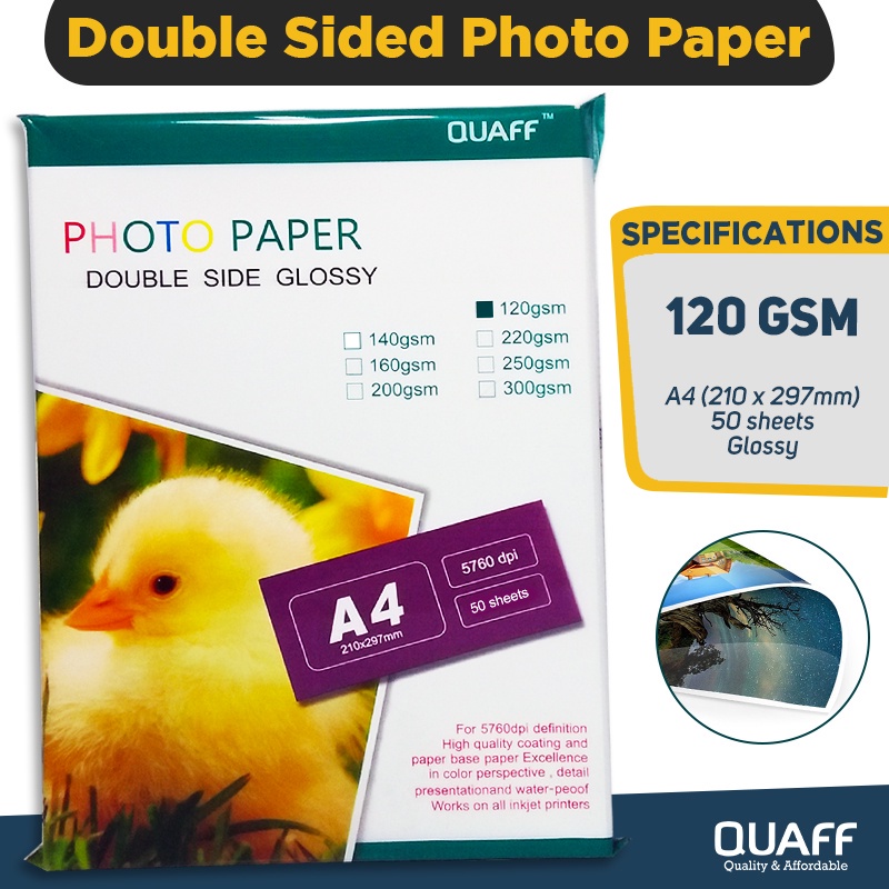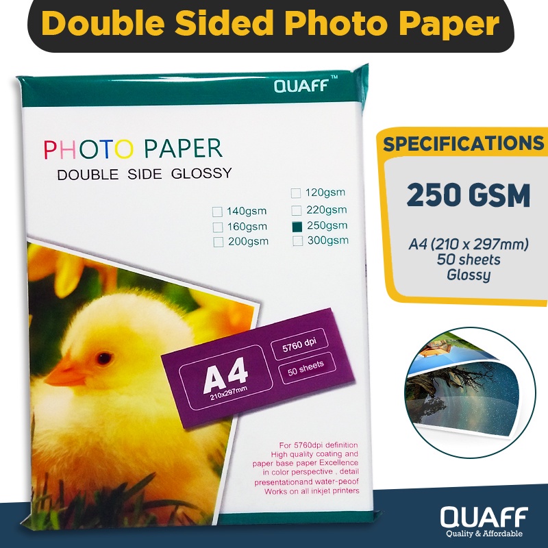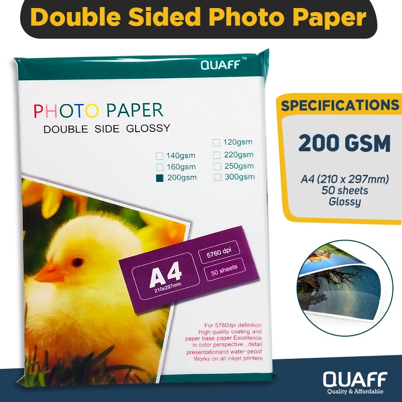 QUAFF Double Sided Glossy Photo Paper A4 (50sheets per pack)