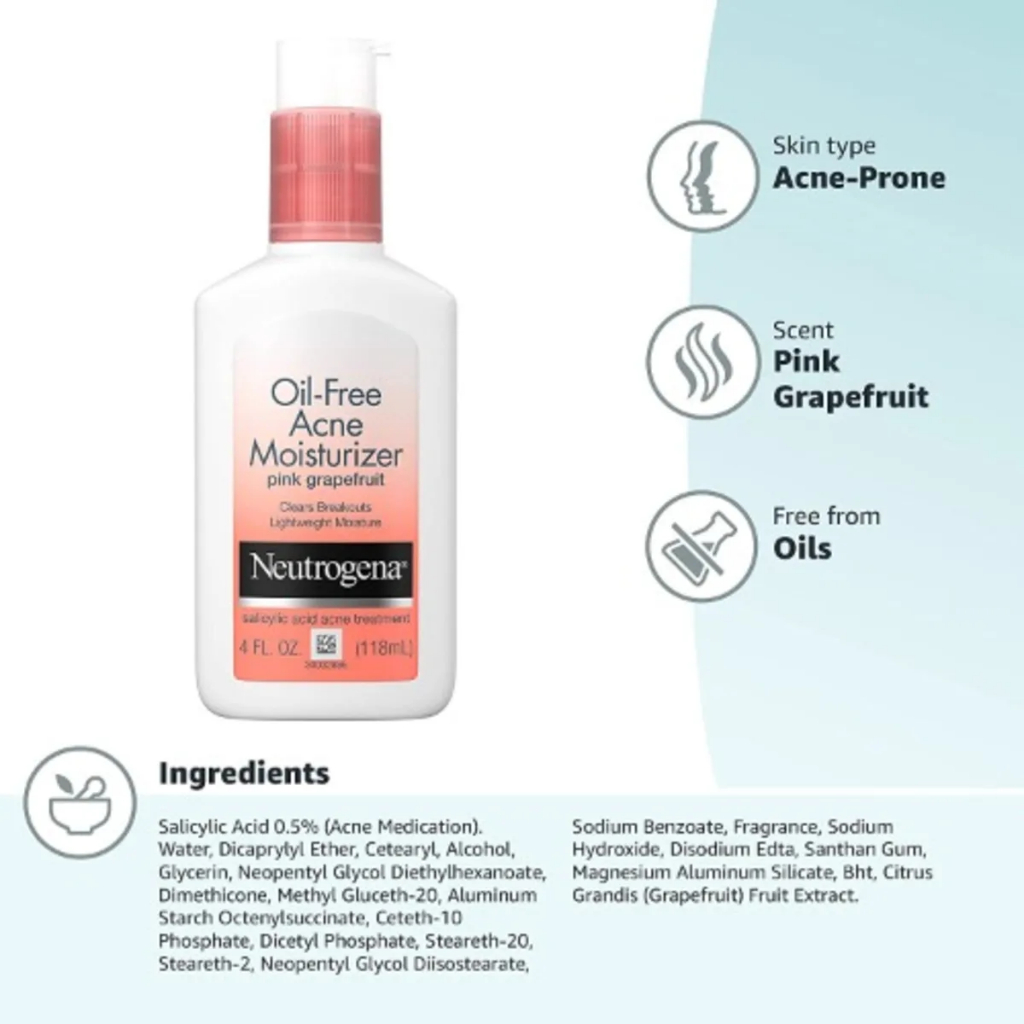 Neutrogena Oil-Free Acne Moisturizer Pink Grapefruit with Salicylic Acid (118ml)