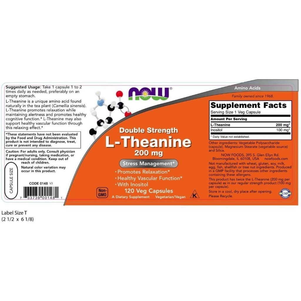 NOW L-Theanine 200 mg,120 Veg Capsules