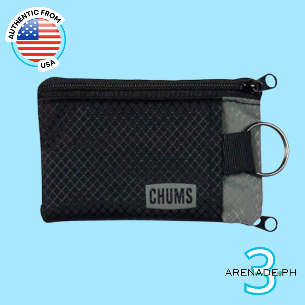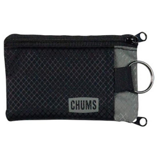 Chums Surfshorts Water Resistant Zippered Minimalist Wallet + Clear ID Window Key Ring Gray & Black