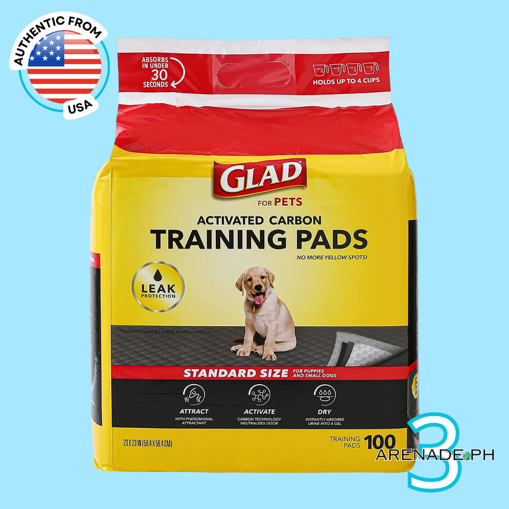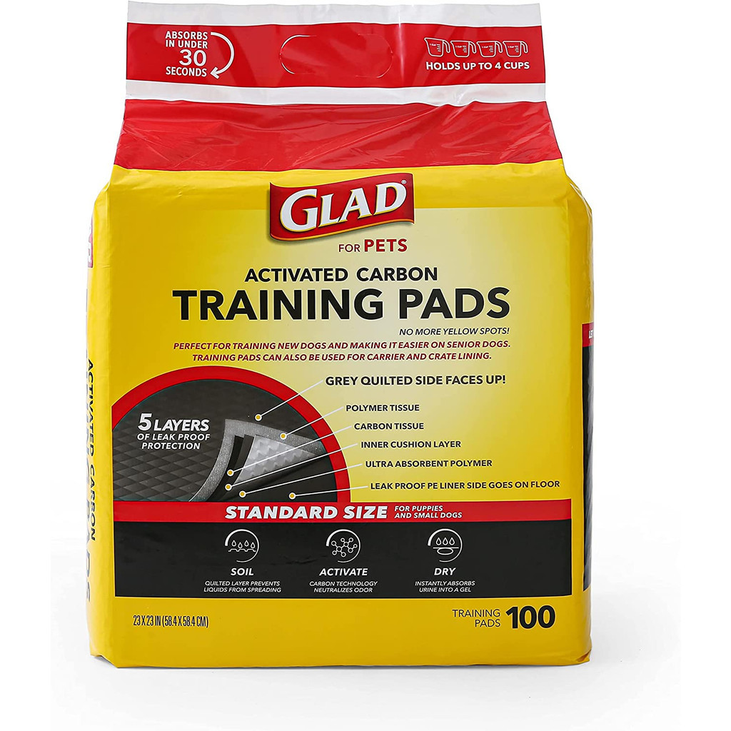 Glad For Pets Activated Carbon Training Pads (100) Standard Size For Puppies And Small Dogs 23"X23"