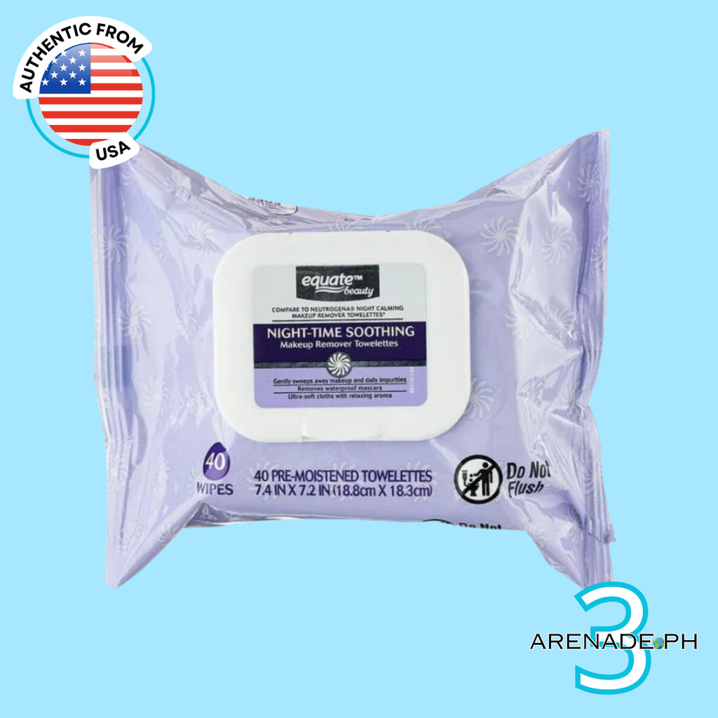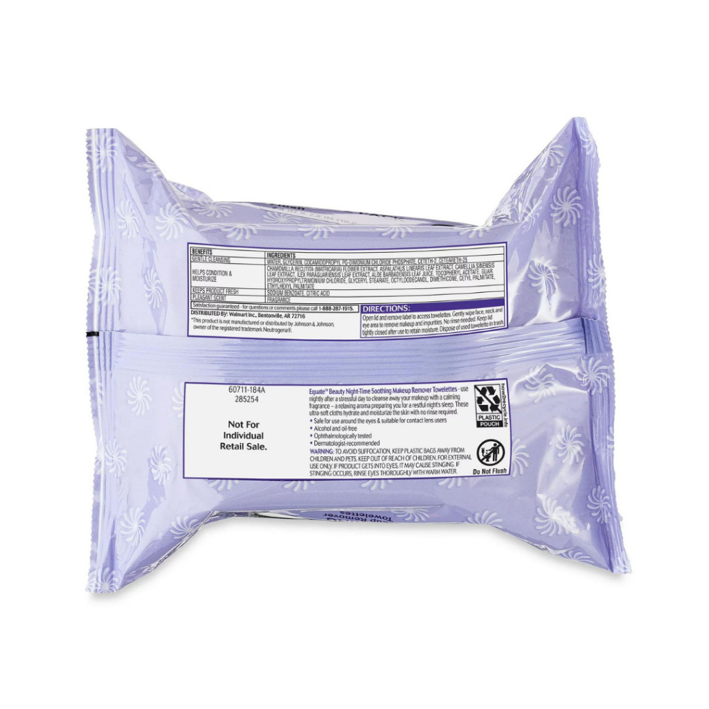 Equate Beauty Night-Time Soothing Make up Remover Towelettes - 40 Wipes (NO WIPE LID)