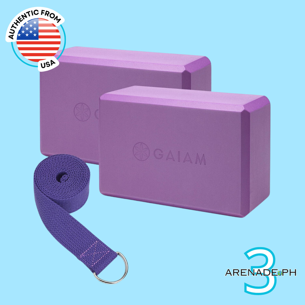 Gaiam Yoga Block & Yoga 8 Inch Strap Combo Set - Yoga Block with Strap Color Purple