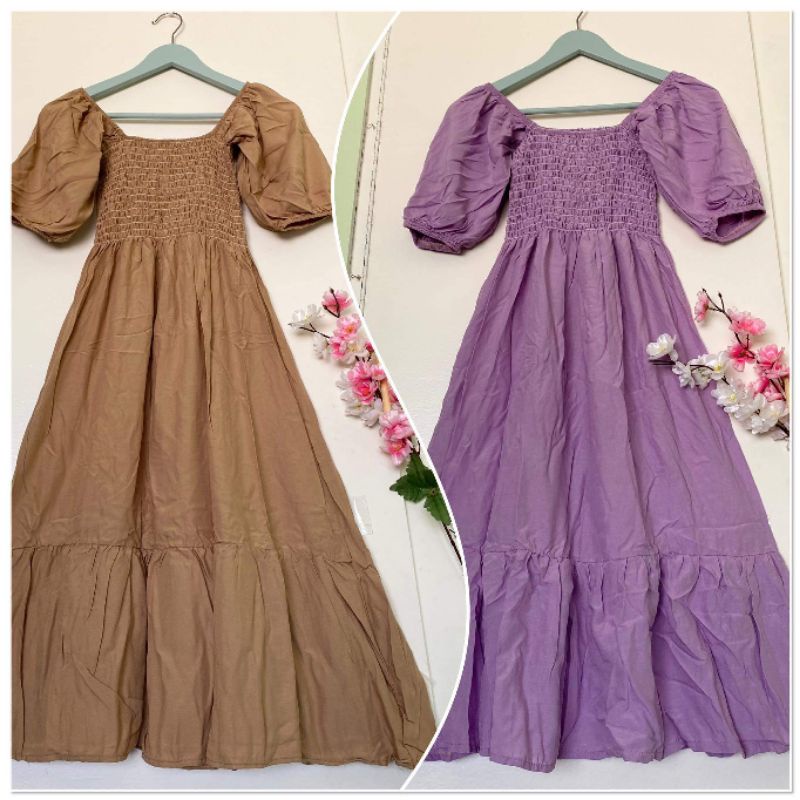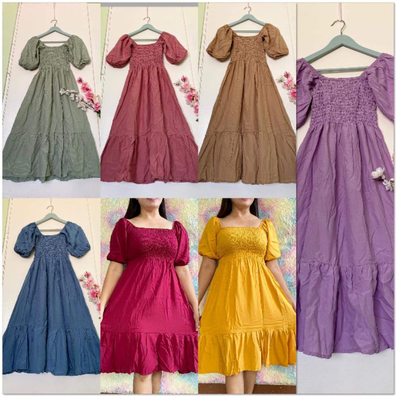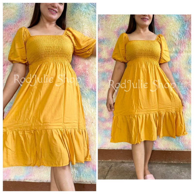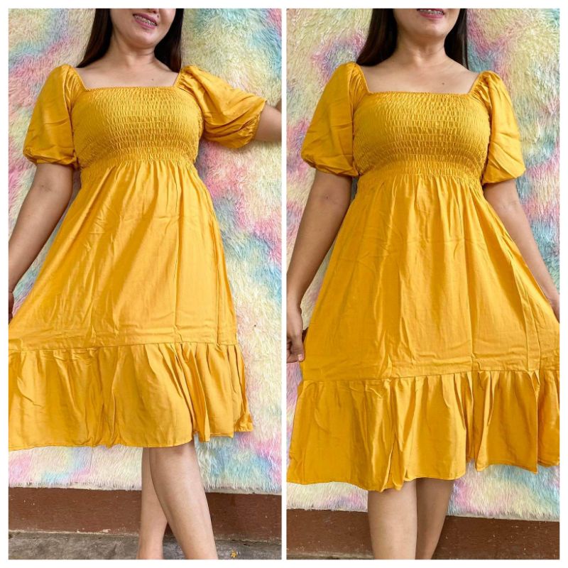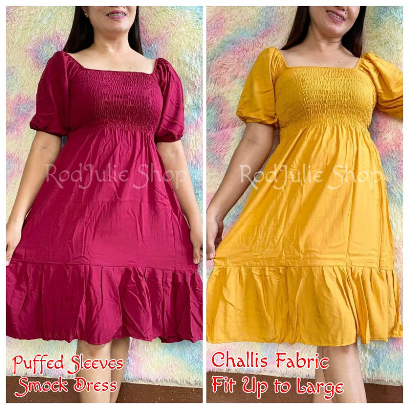 Trendy Plain Puffed Sleeves Smock Dress Free Size Fit up to Large