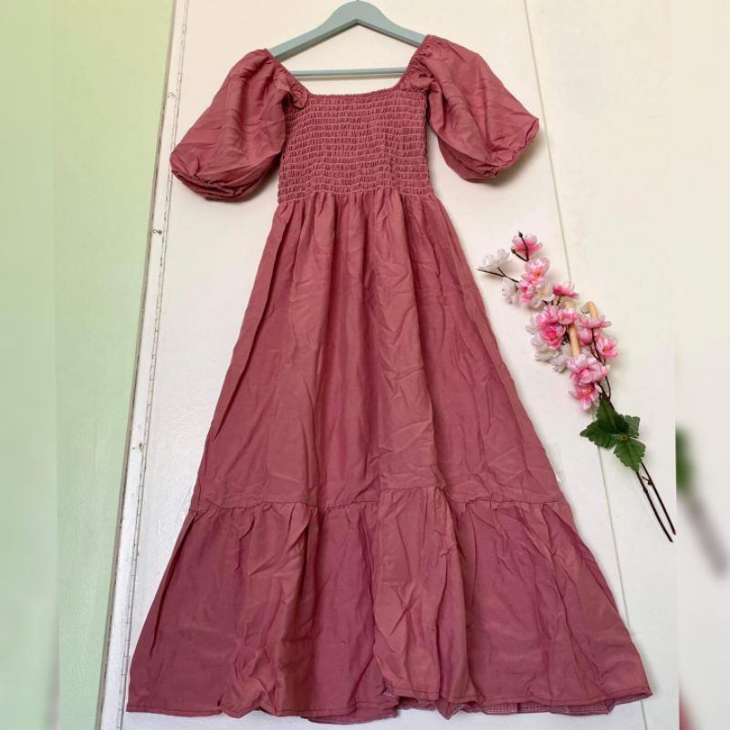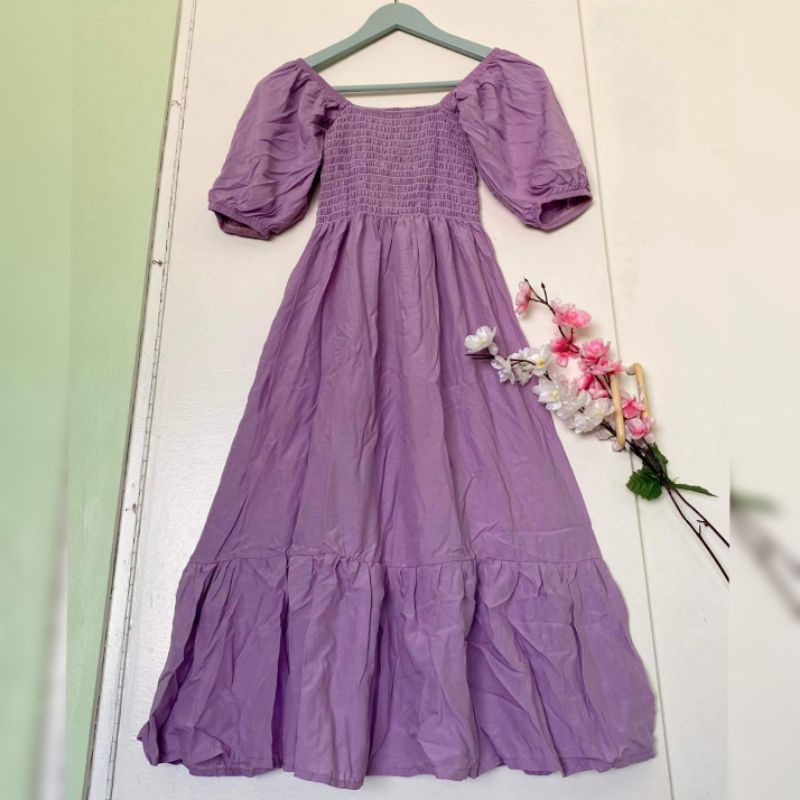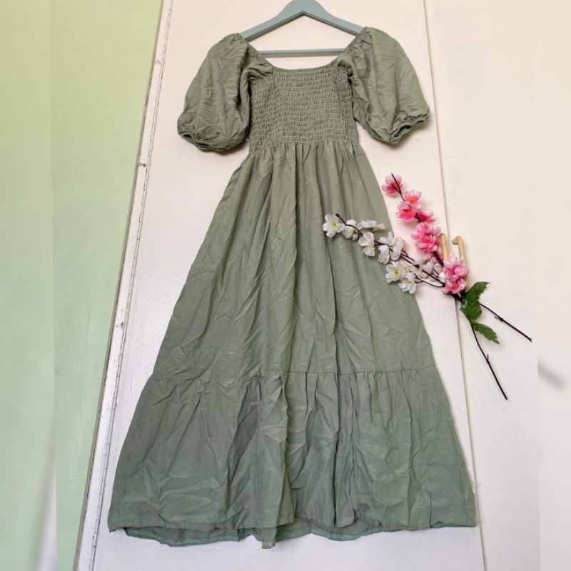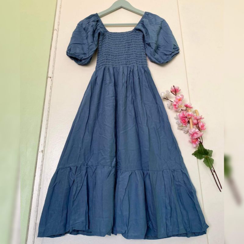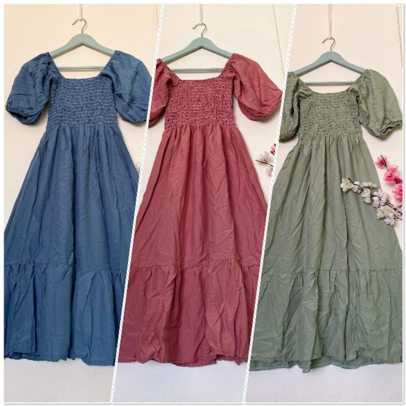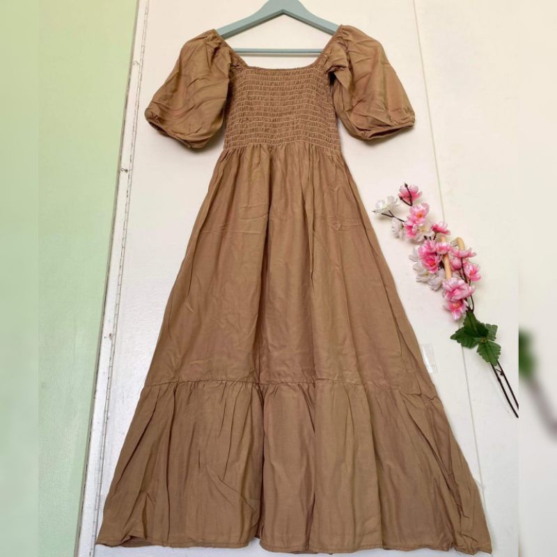 Trendy Plain Puffed Sleeves Smock Dress Free Size Fit up to Large