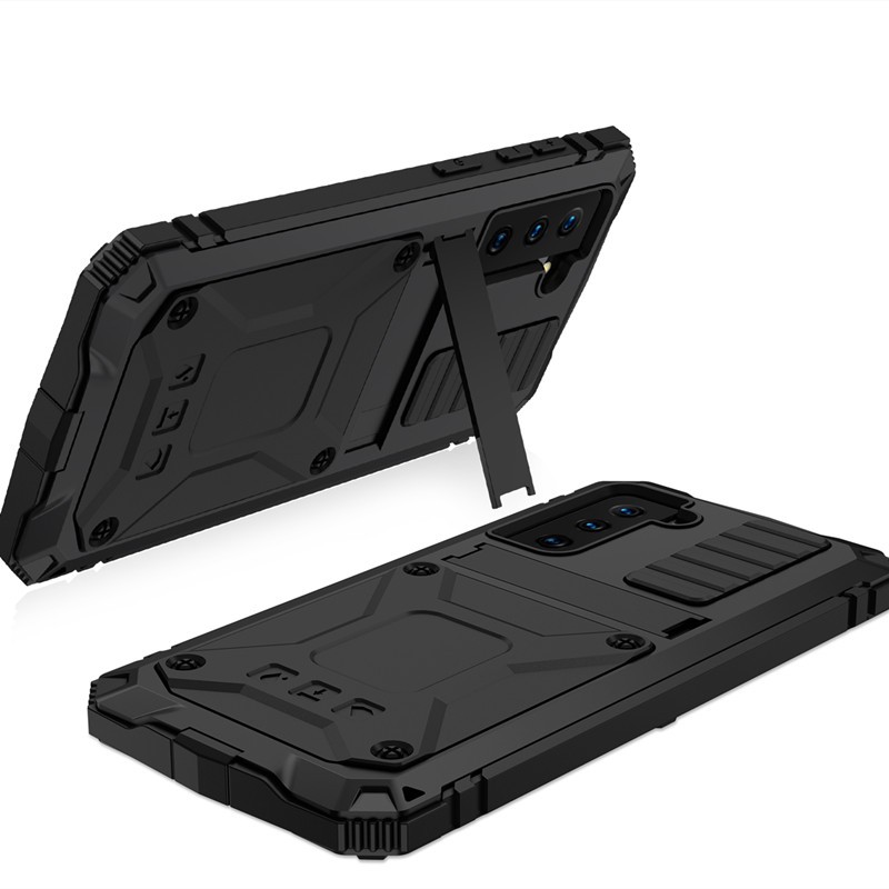 Luxury Metal Aluminum Armor Holder Phone Case For Samsung Galaxy S21 Ultra Plus S21 FE A32 4G 5G M32 5G Shockproof Cover