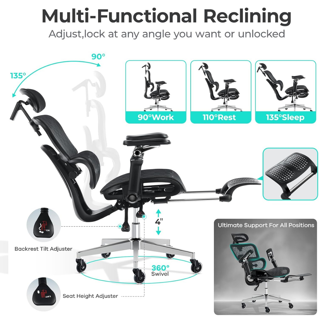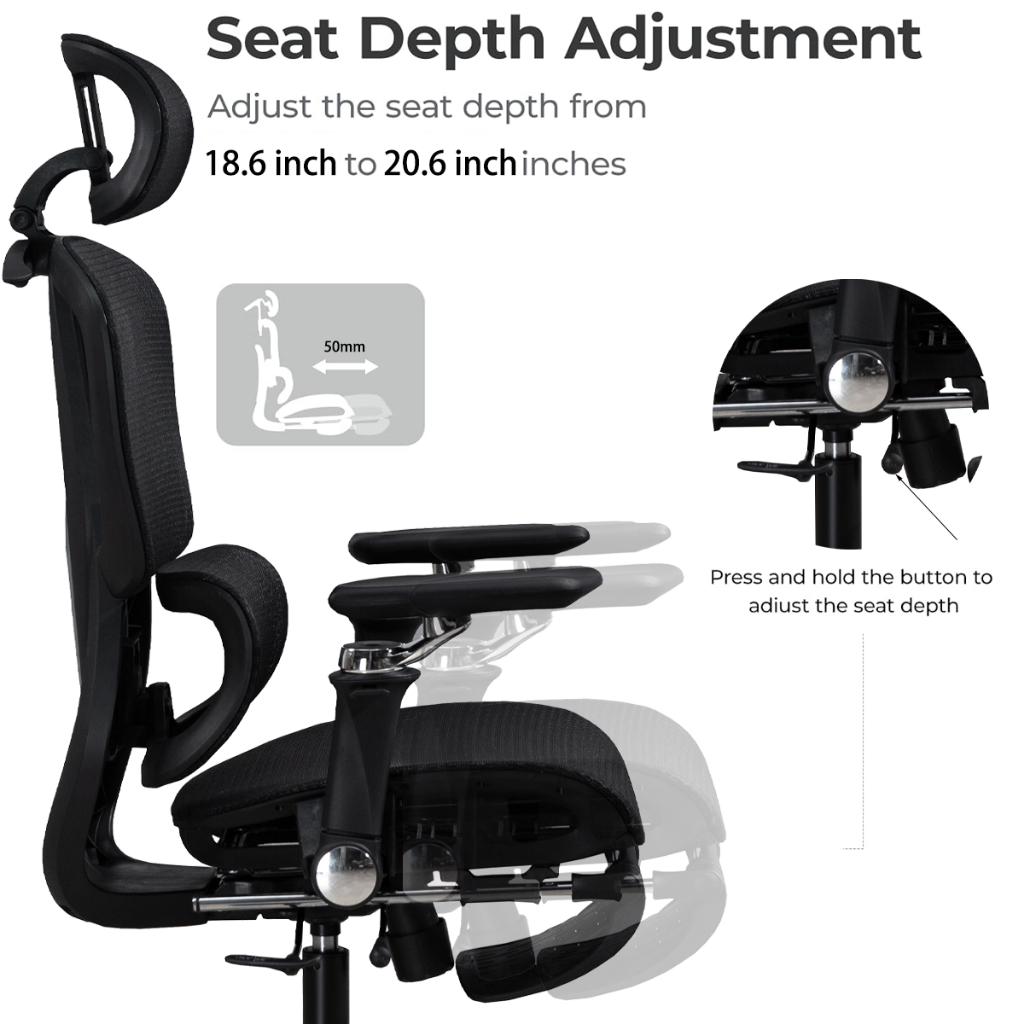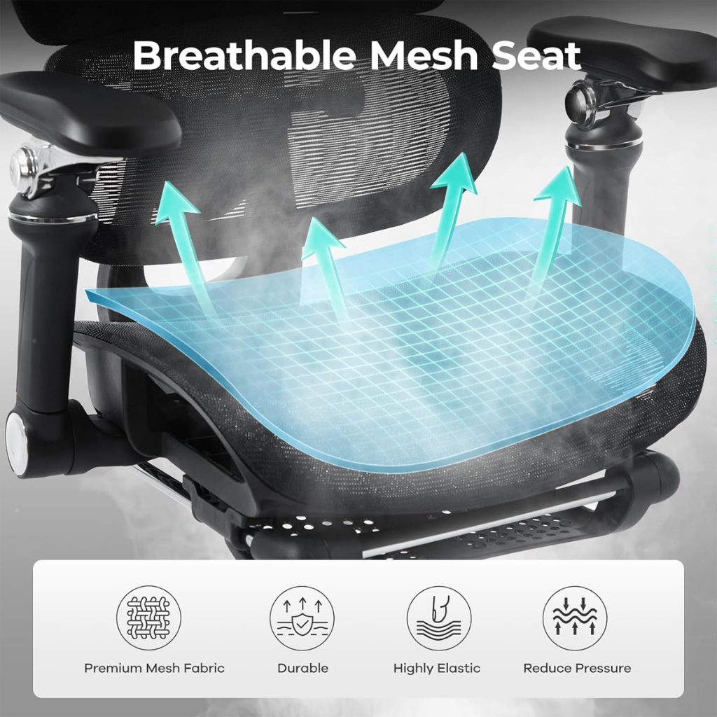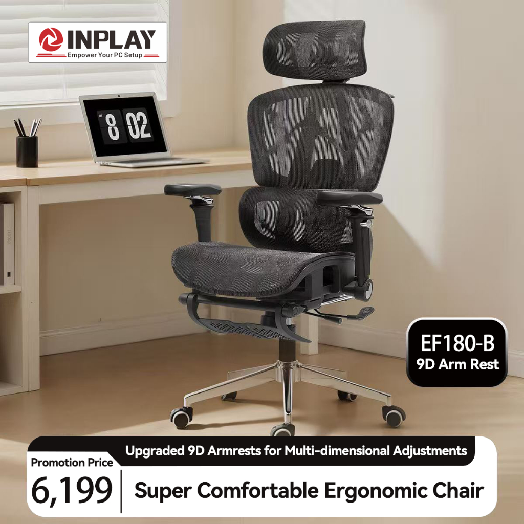 INPLAY EF100-G V2 Ergonomic Chair Adjustable Breathable Design Long Sitting Comfort With Foot Rest