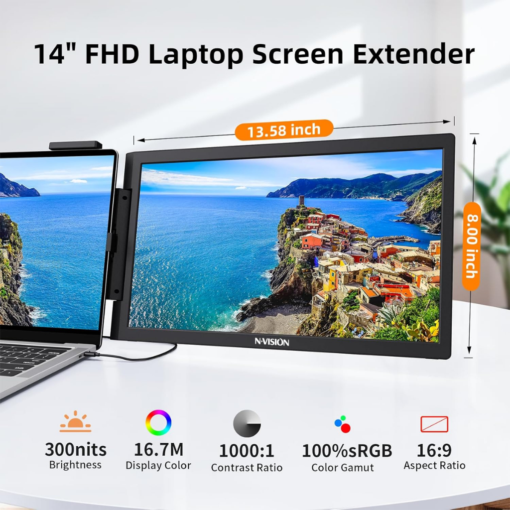 Nvision 14"/15.6" Laptop Screen Extender Portable Monitor FHD IPS 60HZ Laptop Extend Monitor N14X1