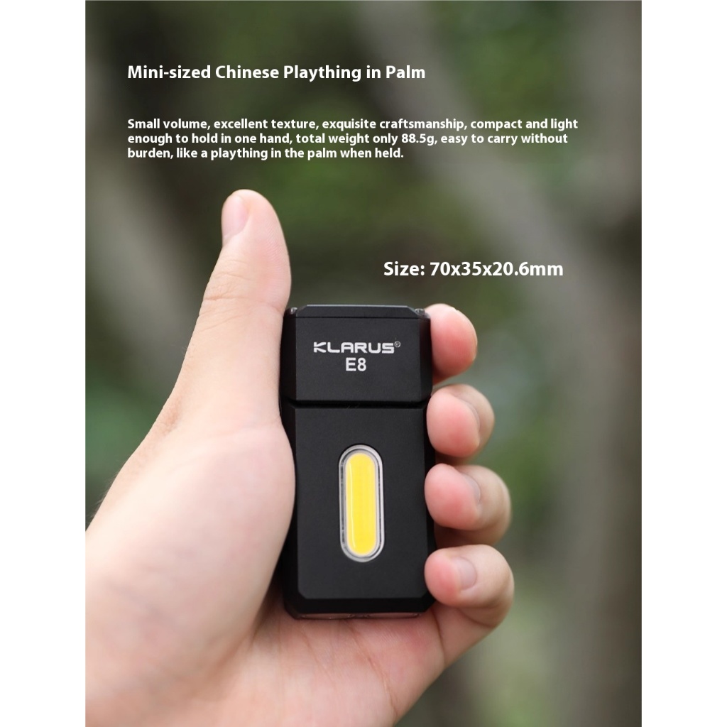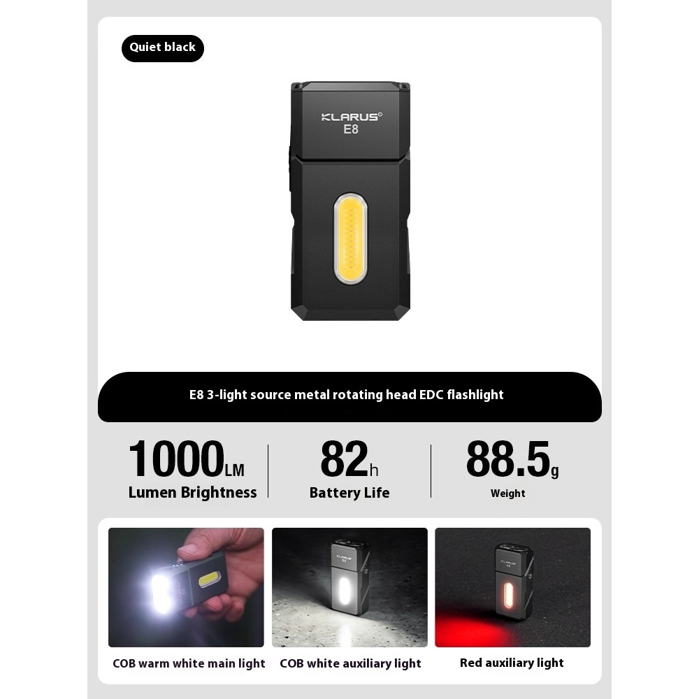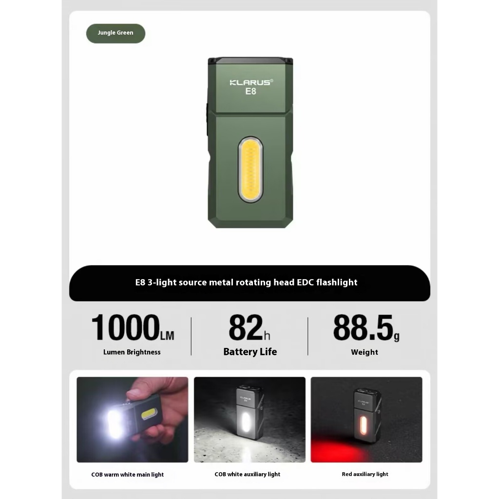 KLARUS E8 Outdoor camping flashlight with three light sources, strong LED, swivel EDC flashlight, portable hiking lighting