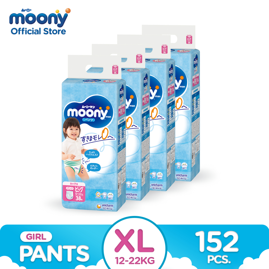 MOONY Airfit Baby Disposable Diaper Pants Girl XL 38 pcs x 4 packs (152 pcs) [ONLINE EXCLUSIVE]