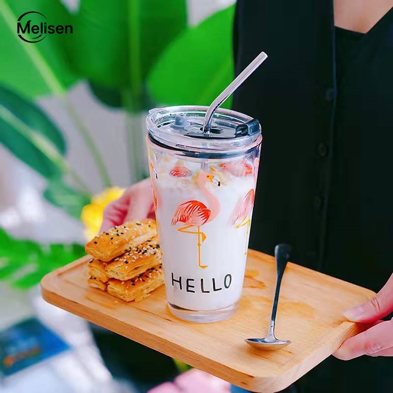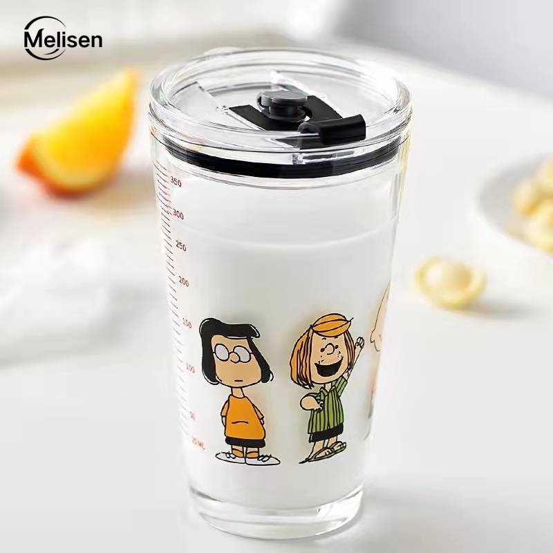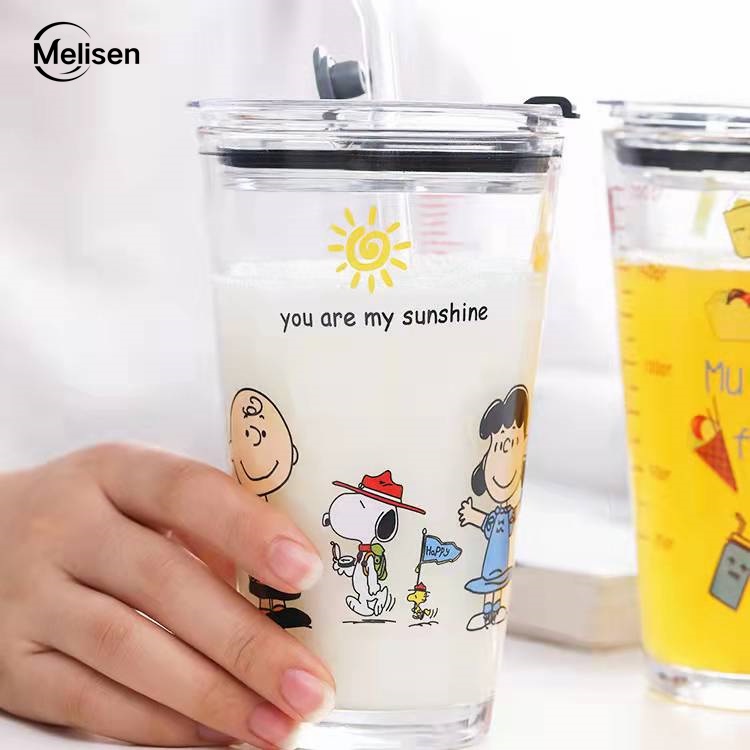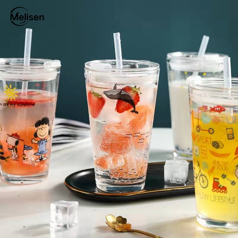 450ml Glass Milk Cup Cartoon Juice Cup Breakfast Coffee Mug With Straw