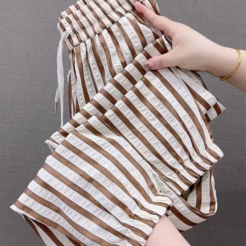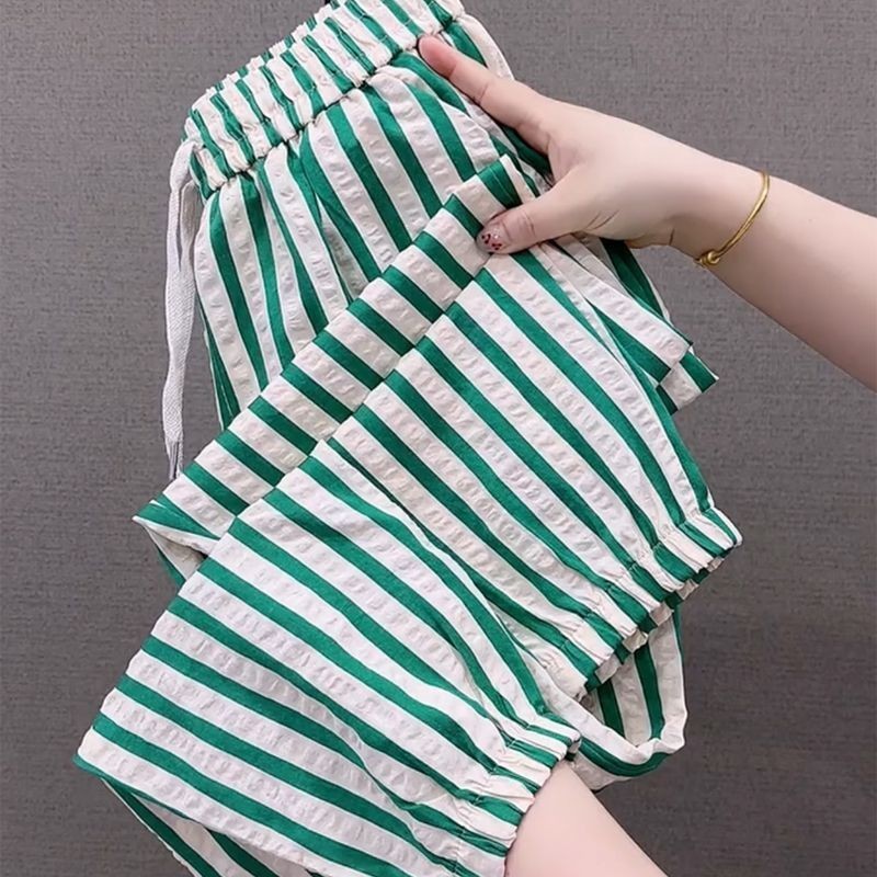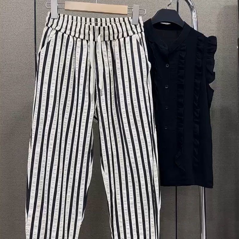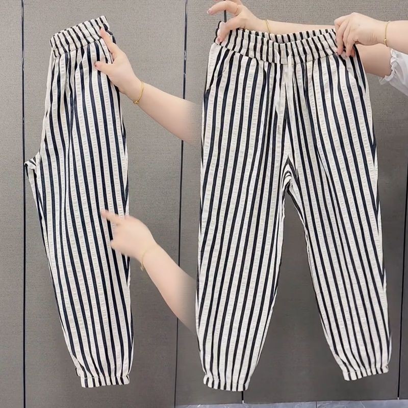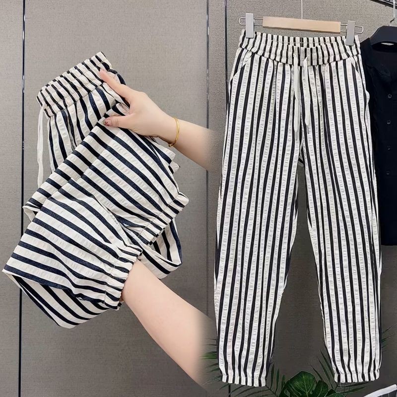 Casual Pants for Women's Tying Pants for Harem Pants Temperament Striped Cropped Pants