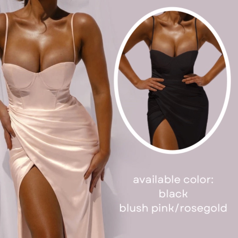 𝒙𝒍𝒄𝒐 new silk long dress drape skirt in button detail black and beige neutral party dress