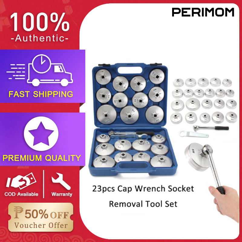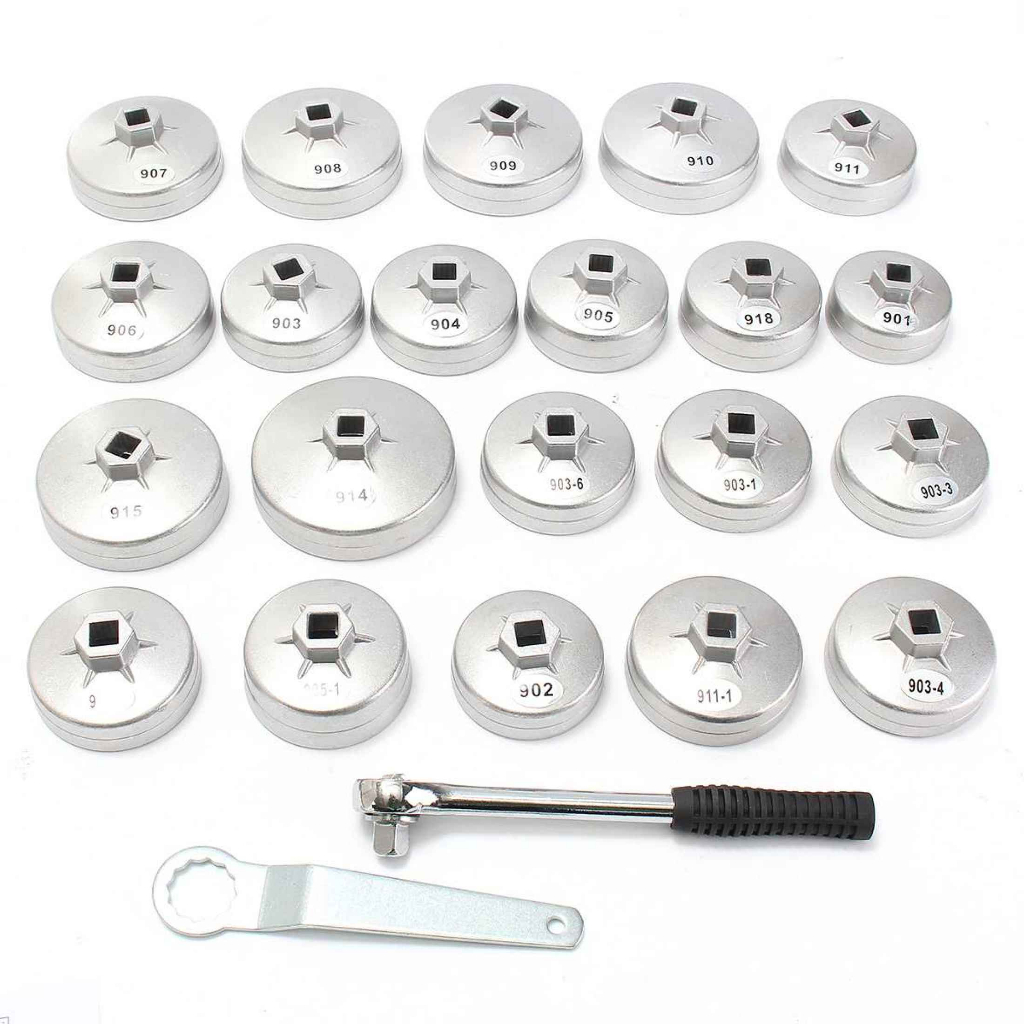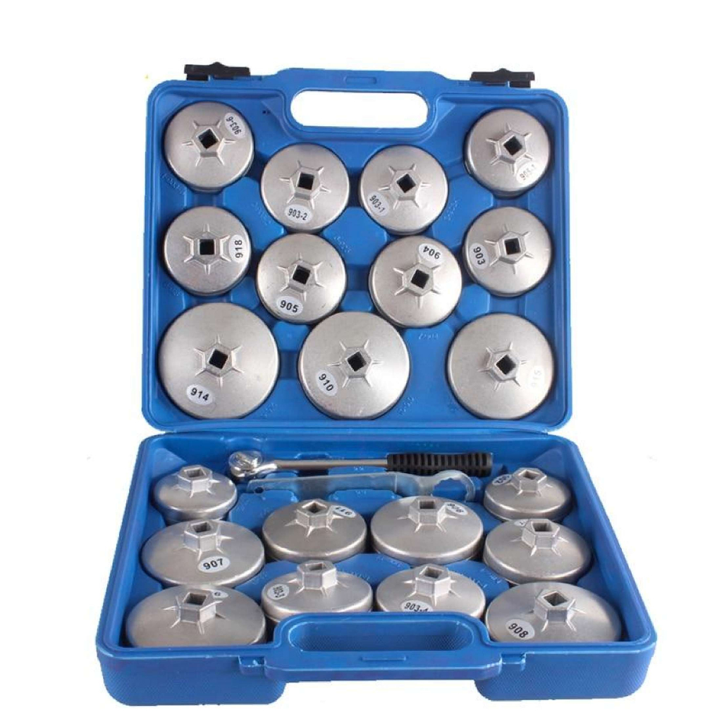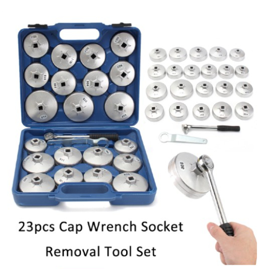 23pcs Oil Filter Cap Removal Wrench Socket Set Ratchet Spanner Cup Type With Portable Storage Case