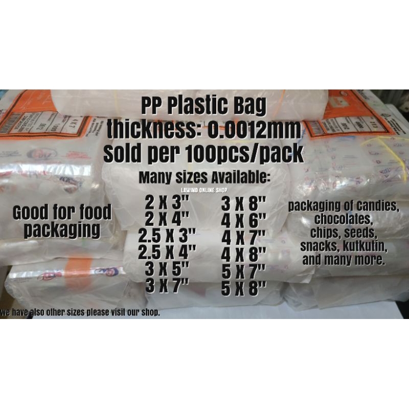 500 PCS. PP PLASTIC LINAW BAGS CLEAR SMALL SIZES THICKNESS 0.0012 FOOD GRADE PACKAGING