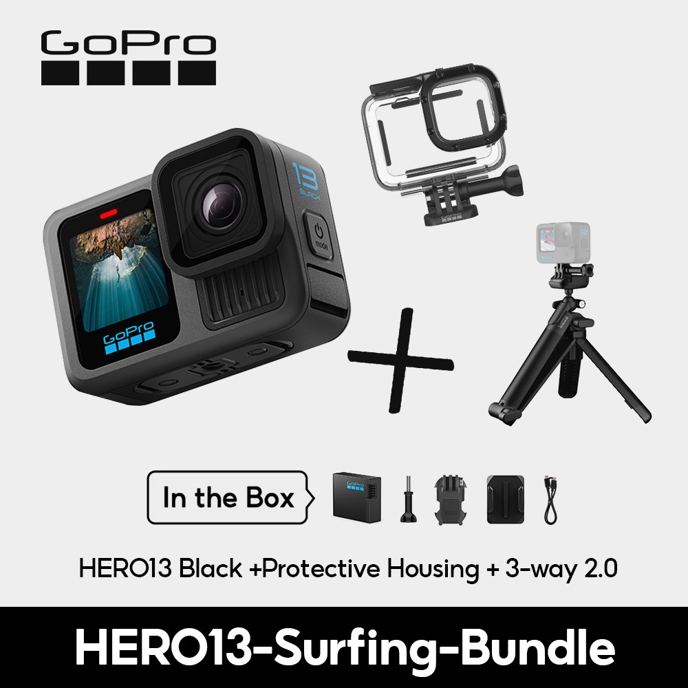 GoPro Hero13 Black Action Camera Video 5.3K60/ 4K120 + Photo 27MP , HyperSmooth 6.0, HLG-HDR Video, Rugged + Waterproof to 33ft (10m), Burst Slo-Mo, GPS[1 Year Warranty]