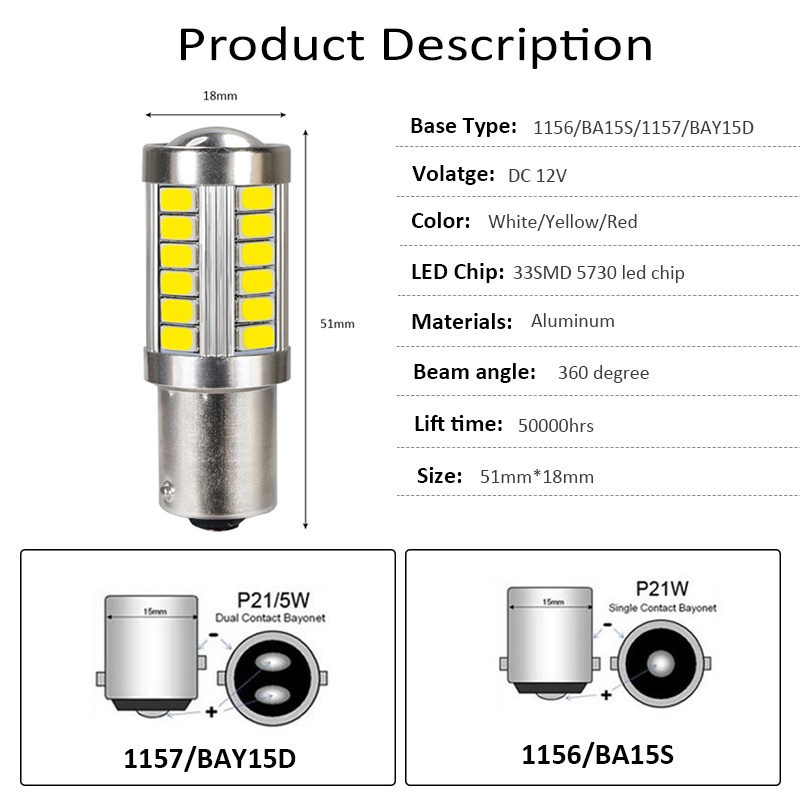 T20 7443 LED Bulb T25 3157 p27/7w Car Brake Reverse Light 1157 BAY15D P21/5W Lamp 1156 BA15S P21W Turn Signal