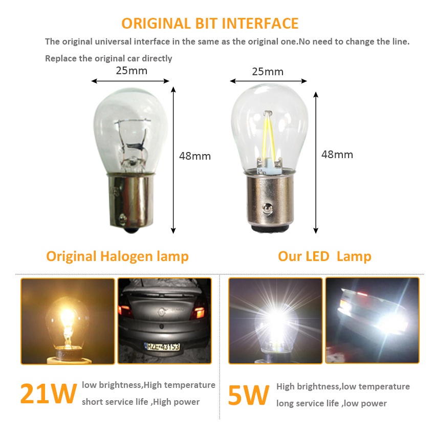 1156 P21W BA15S 1157 BAY15D LED COB Filament Chip Car Reverse Parking Bulb Lamp Auto Brake Lights 12V Red White Yellow