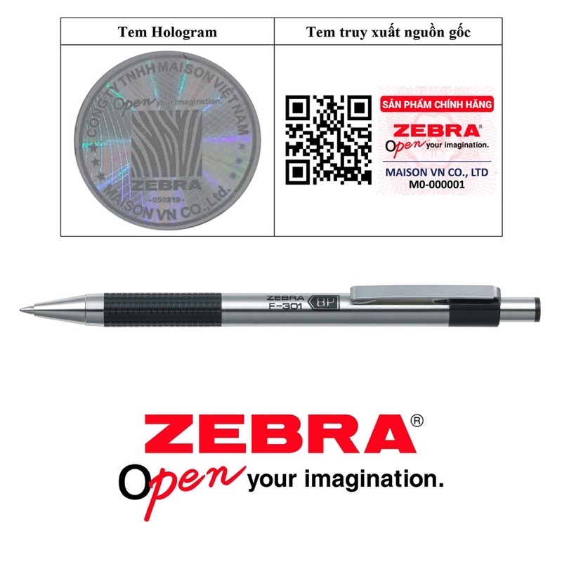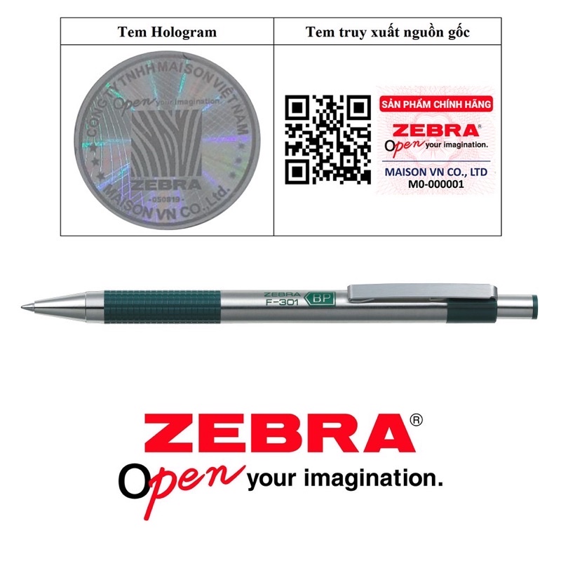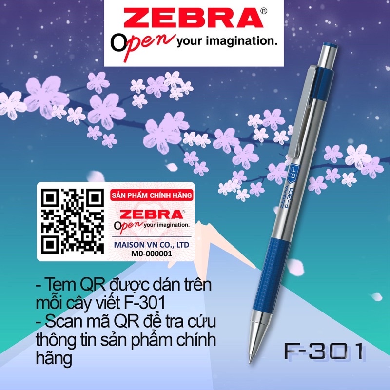 [Genuine] Zebra F301 ballpoint pen with blue ink (with Mai Son QR code stamp).- Thu Thao Stationery