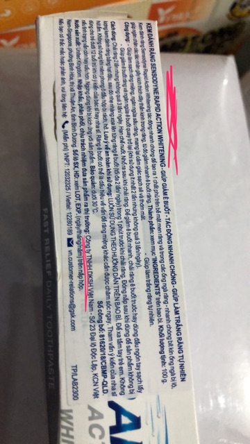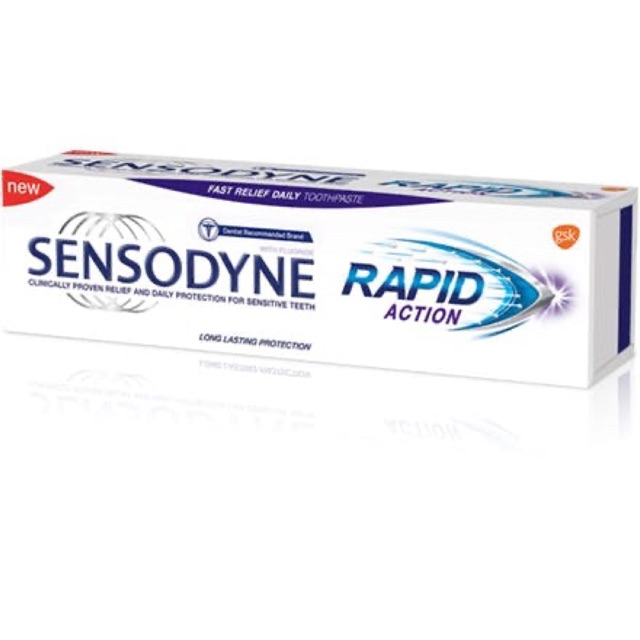 Sensodyne Rapid Action toothpaste helps reduce sensitivity quickly, made in: Thailand, distributor: DKSH