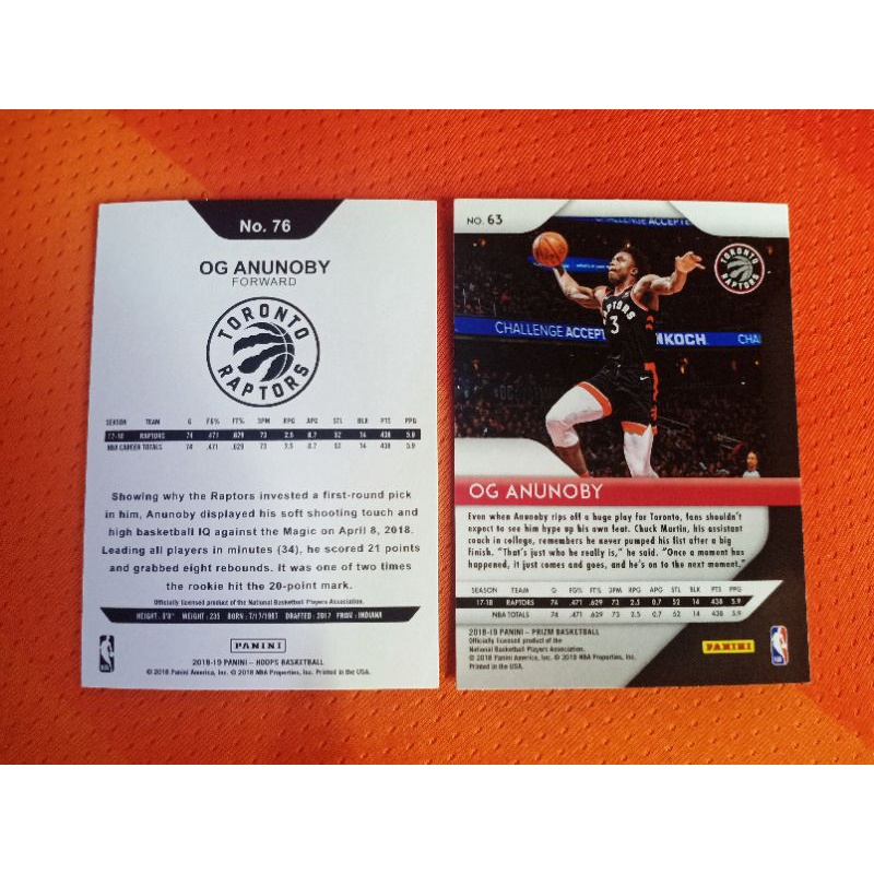 OG Anunoby TOR Raptors F #3 Lot of (2) Cards | Panini Nba Cards