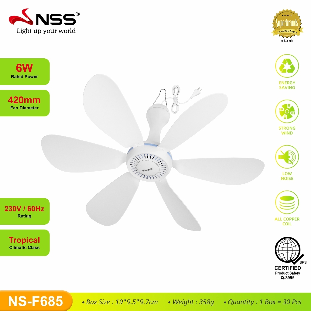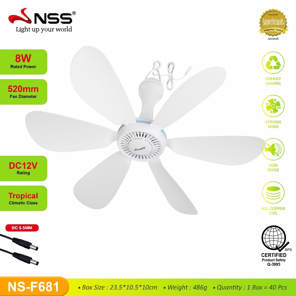 NSS 12V DC Ceiling Fan Big Size 6 Blades Portable Hanging Electric AC Fan Large Household Cooling