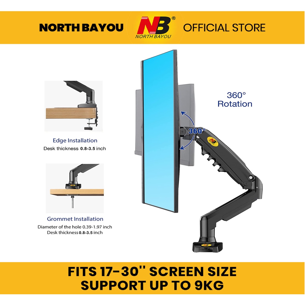 North Bayou Bayou F80 Monitor Desk Mount Stand Full Motion Swivel Arm Gas Spring For 17''-30''