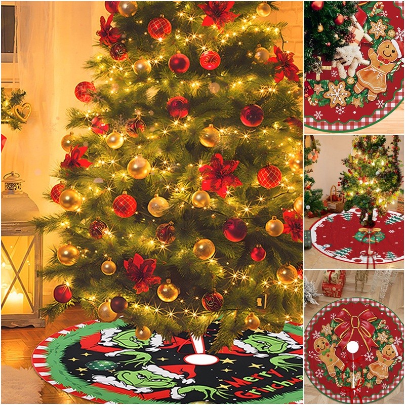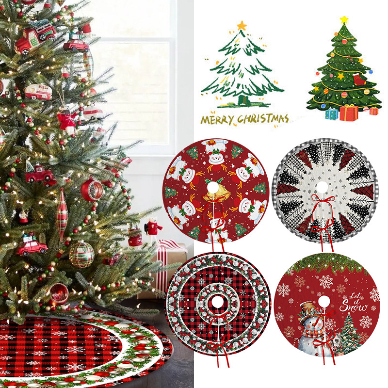 Christmas Tree Skirt Santa Claus Printed Tree Rugs Xmas Home Decorations Christmas Supply