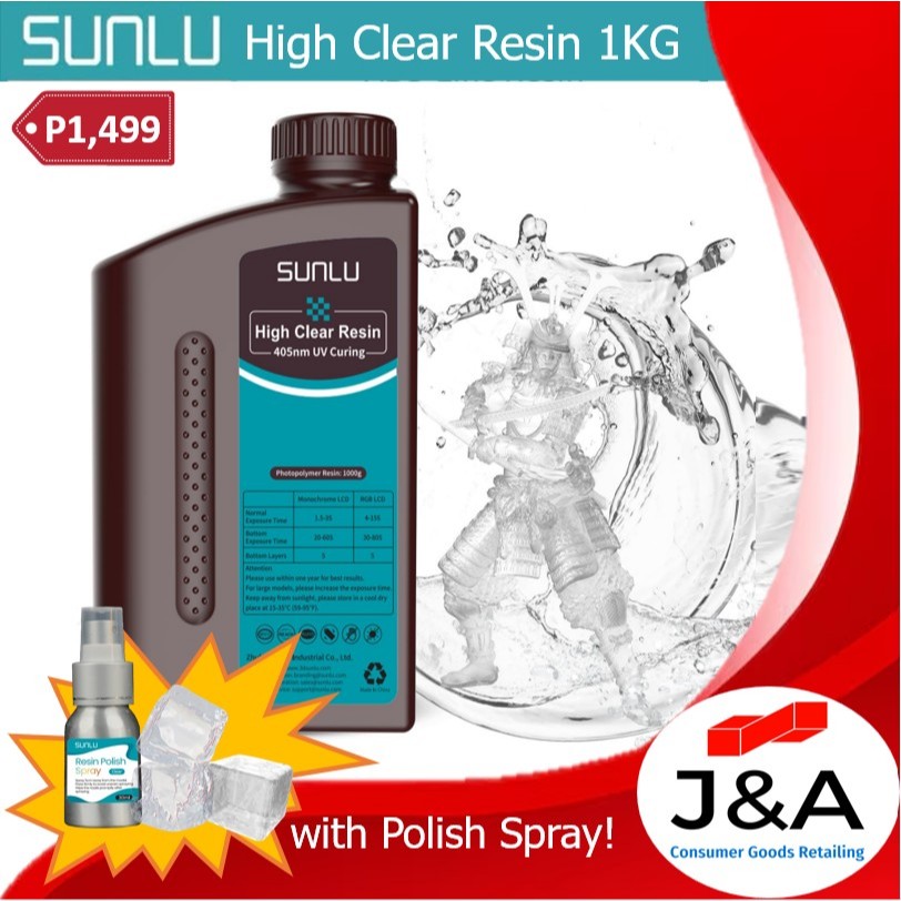 Sunlu High Clear Resin 1kg with Polish Spray 30ml (Photopolymer Resin for 3D Printing)