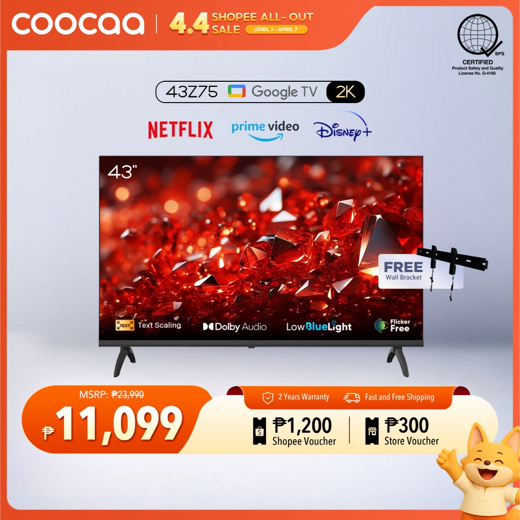【BEST SELLER】COOCAA 43 Inch Google Tv Dolby Audio, Flicker Free (43Z75) w/ wall bracket