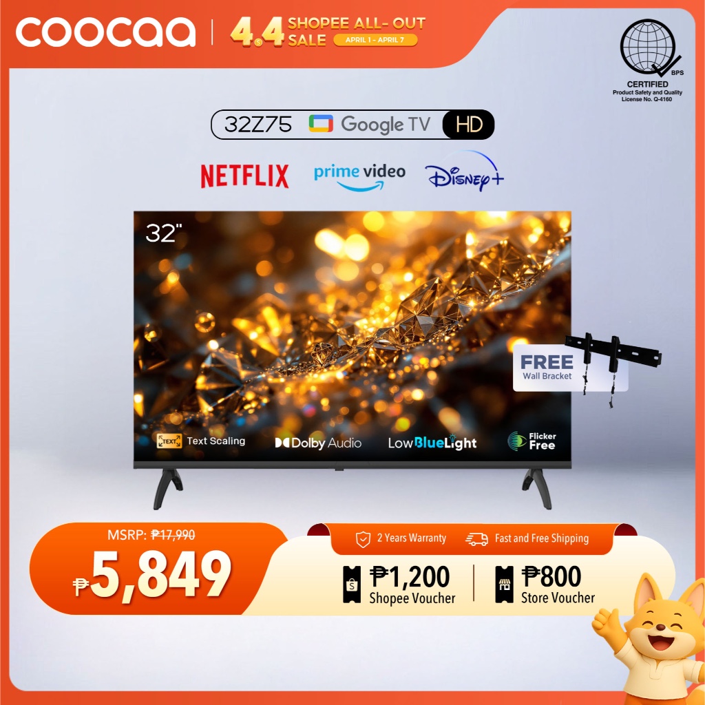 【BEST SELLER】COOCAA 32 Inch Google Tv Dolby Audio, Flicker Free (32Z75) w/ wall bracket