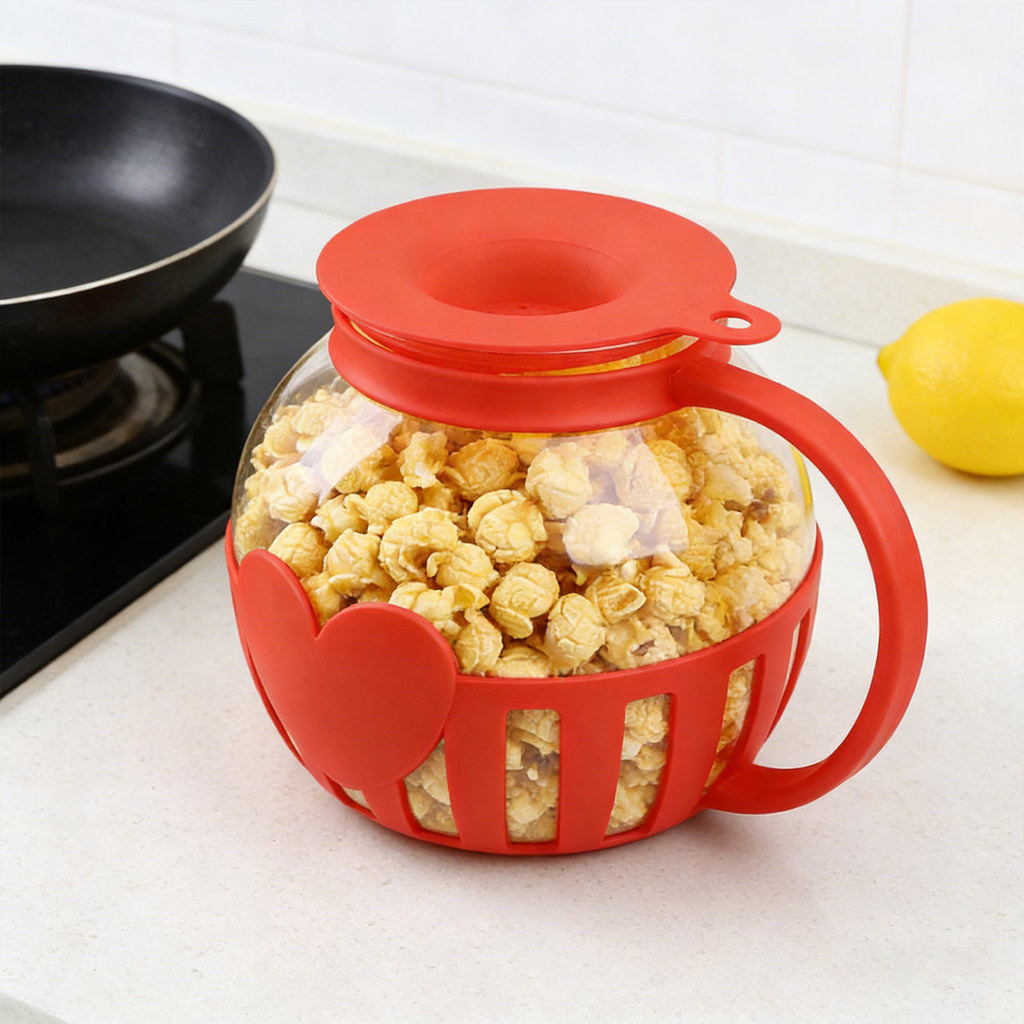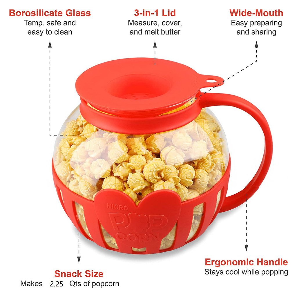 <COD> Popcorn Maker Microwave Popcorn Maker Microwave Borosilicate Glass Popcorn Maker with Dual-function Lid – Healthy Quick Easy Homemade Popcorn Snack Popper for Family