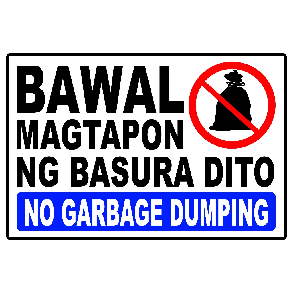SIGN BAWAL MAGTAPON NG BASURA DITO NO GARBAGE DUMPING SIGNAGE PVC TYPE OR PLASTIC LAMINATED