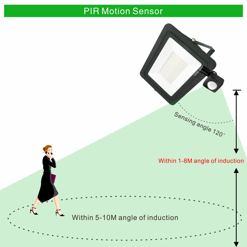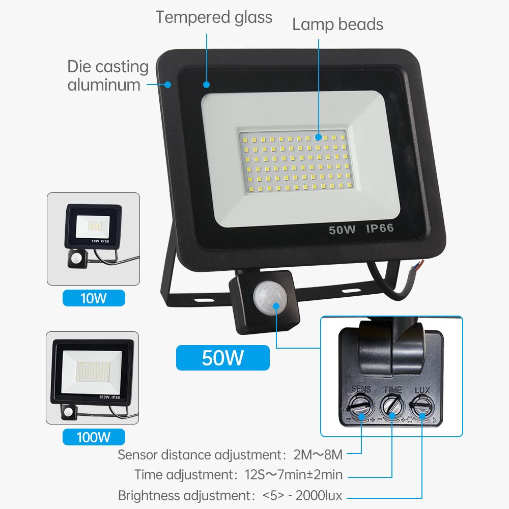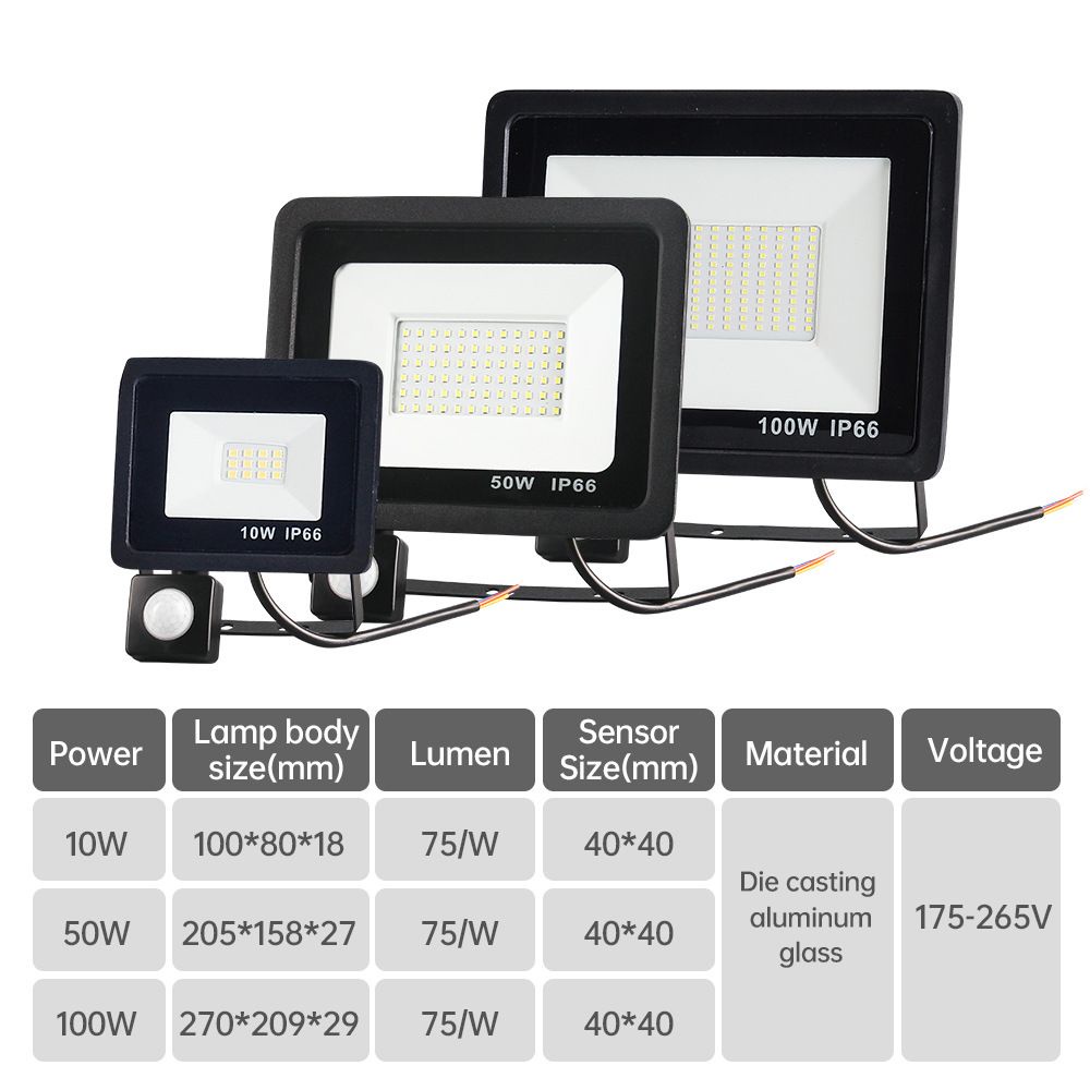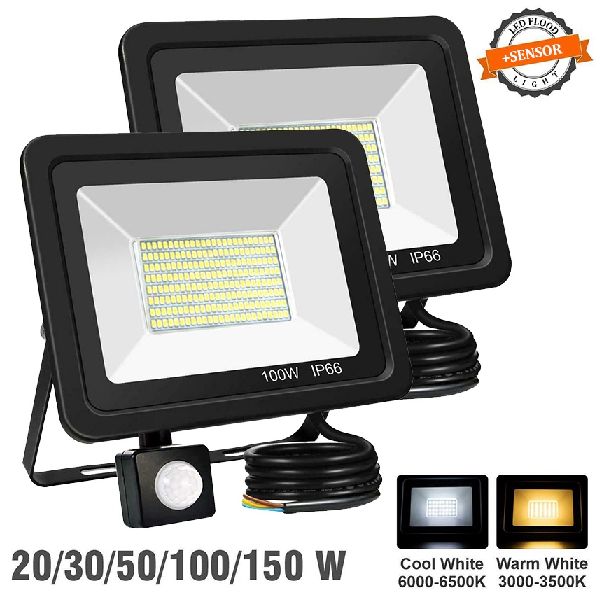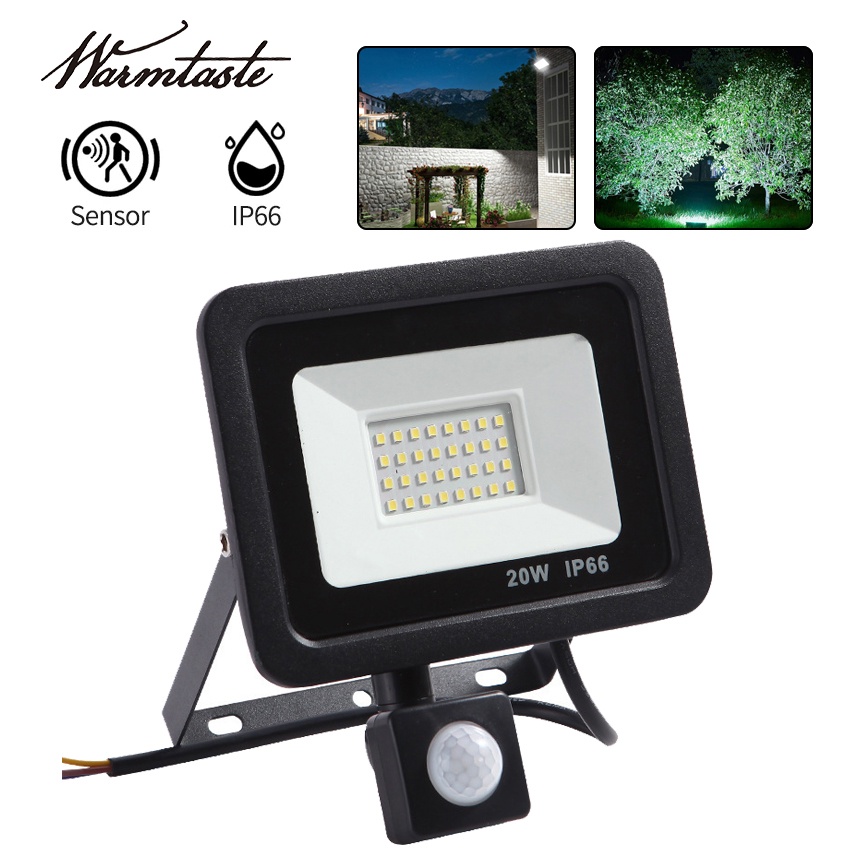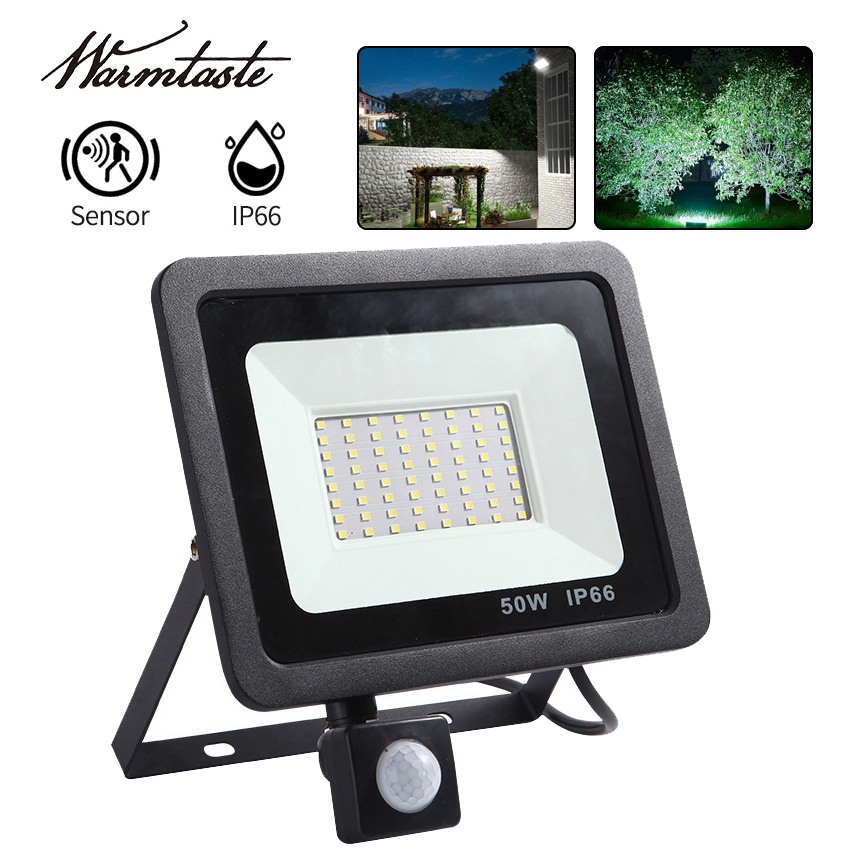 Warmtaste Led Outdoor Floodlight 10W 20W 50W 100W 220V Motion Sensor Detector Flood Light Waterproof Spotlight Hanging Exterior Wall Lamp for Garden Yard Street