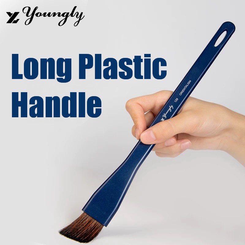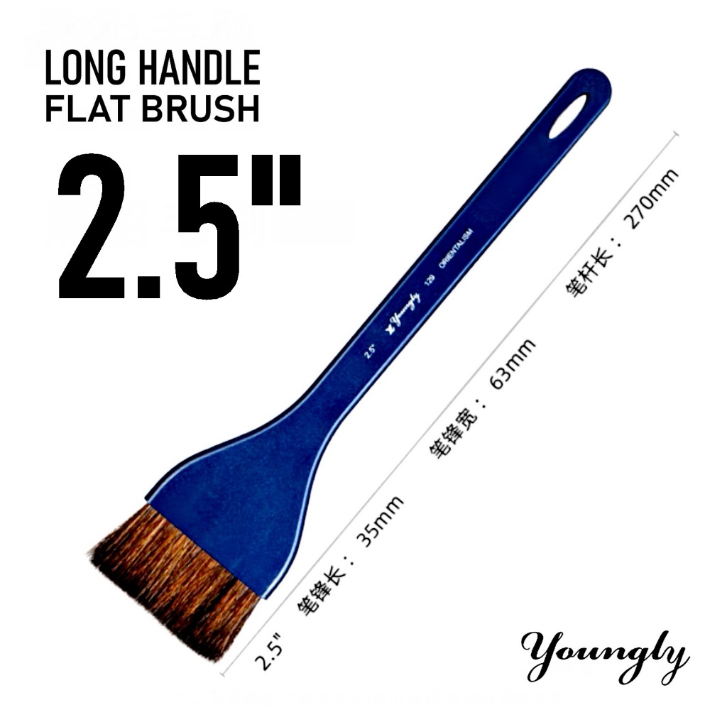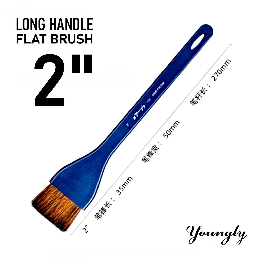 YOUNGLY Long-handle Watercolor FLAT brush ; HAKE brush ( 1 pc.) Mix Squirrel Hair (choose your size)