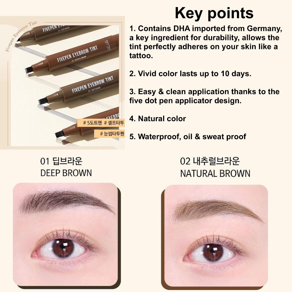 RiRe Fivepen Eyebrow Tint 2.5g Waterpoof fork shape eyebrow Mascara, long-lasting, oil proof, sweat proof