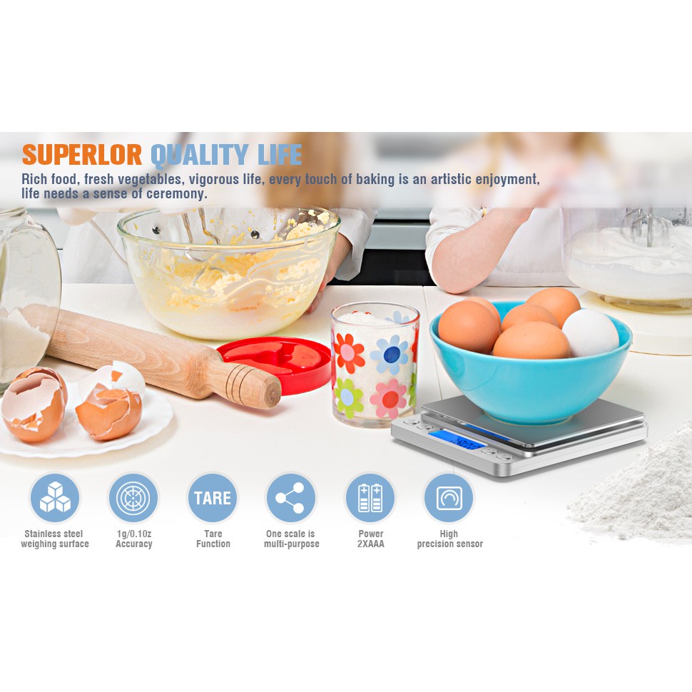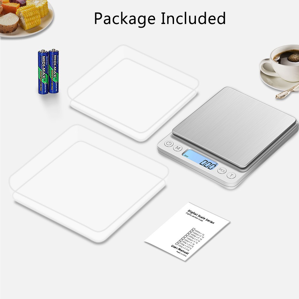 Food Weighing Scale Digital Kitchen Scale Weight Grams Cooking Baking 3kg/0.1g and 500g/0.01g